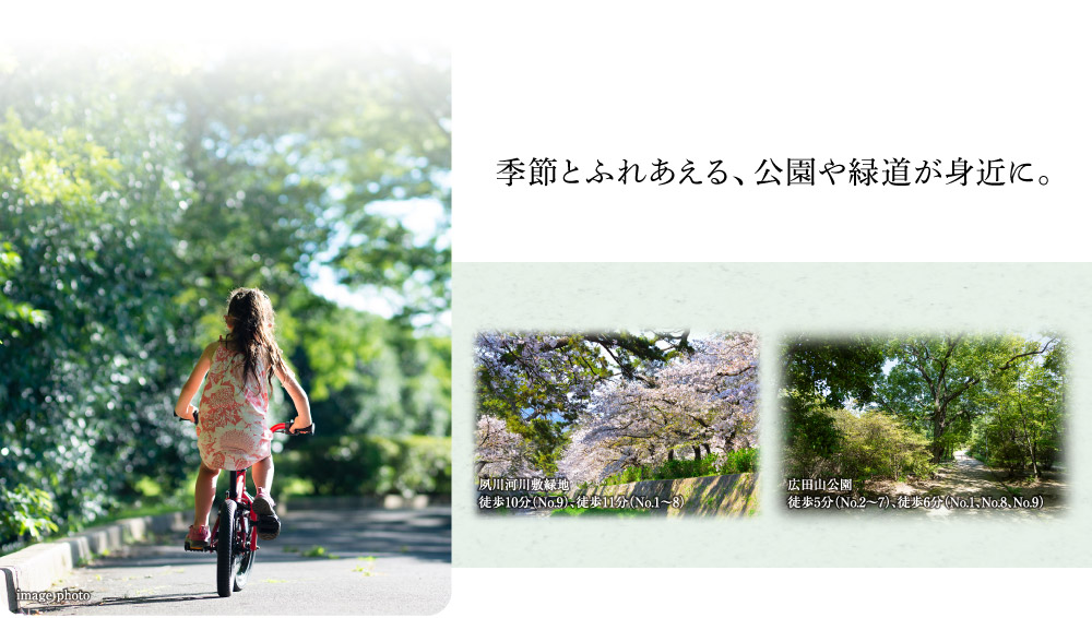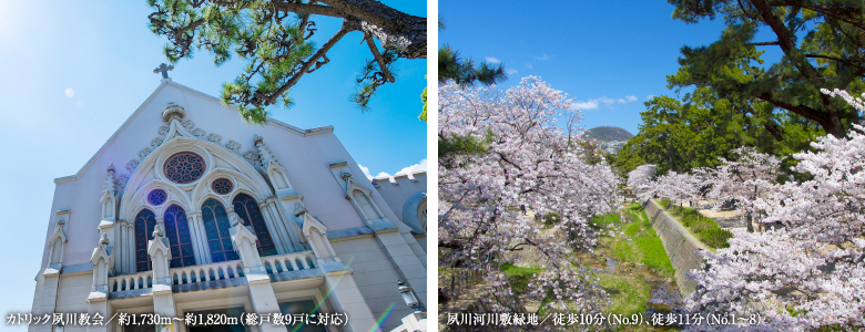 夙川河川敷緑地/徒歩10分(No.9)、徒歩11分(No.1~8)