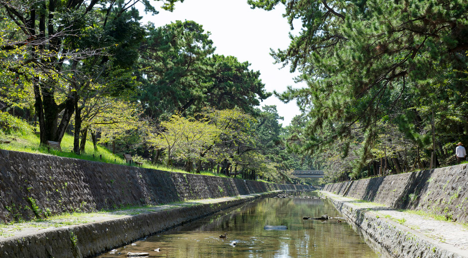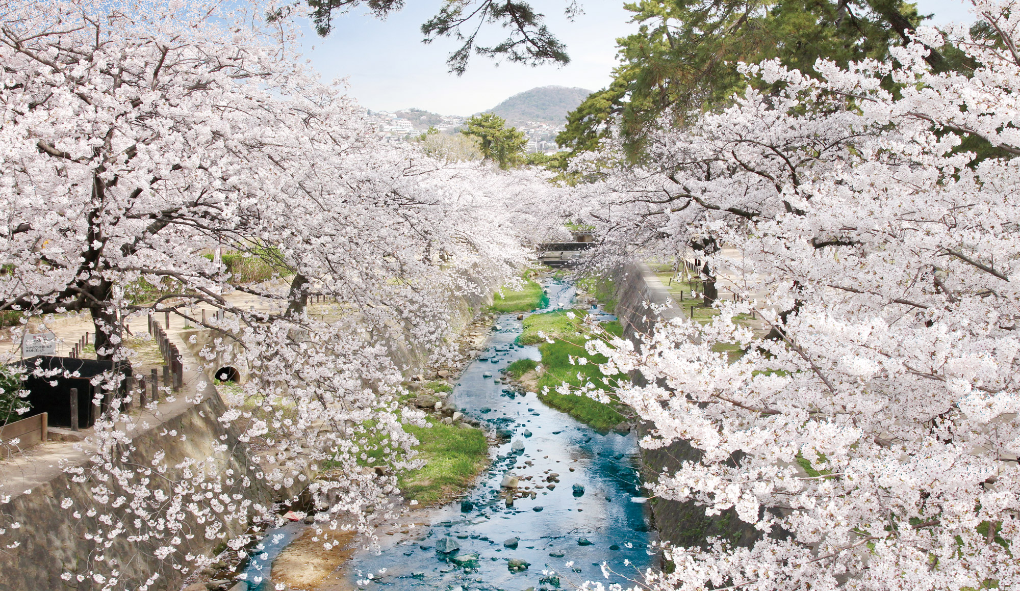 約1,660本※の桜並木と松林が対比を織りなす夙川。