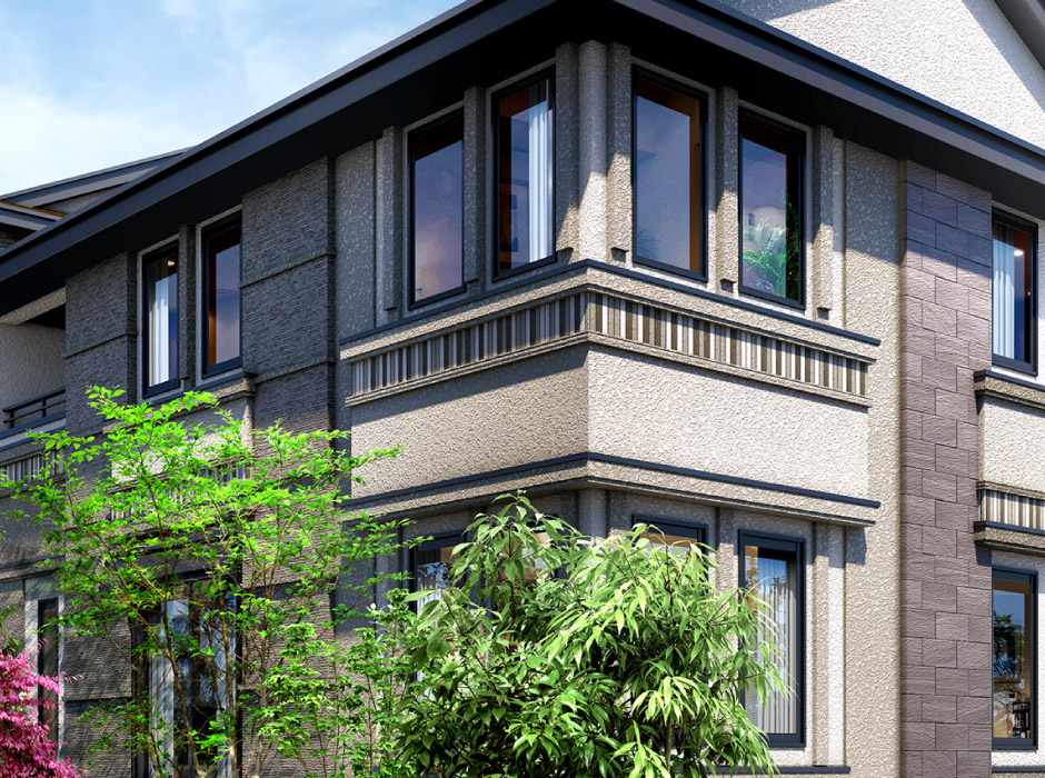 各邸ごとの個性を際立たせるため、多彩な窓をデザイン。窓廻りに装飾を施すことで凹凸による除影を生み、美しく彫りの深い表情を創り出しています。