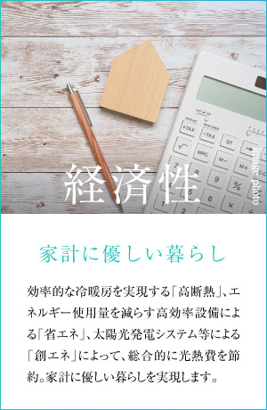 高仕様の断熱材を使用することで、優れた断熱性能をクリア(※2)。外気温の影響を受けにくいため、冬は暖かく夏は涼しい住まいに。冷暖房の設定温度を控えめに設定することで、光熱費の削減にもつながります。