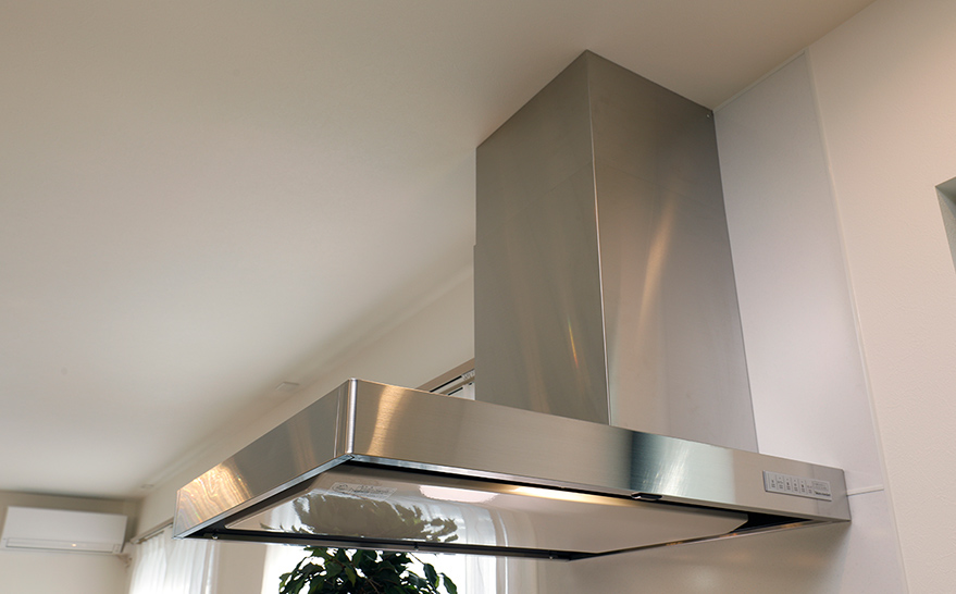 煙や匂いを集める能力が高く、油汚れの掃除がしやすいホーロー整流板を備えたレンジフードを採用。