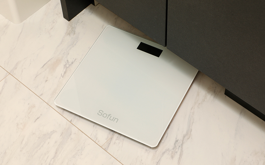 置き場所に困る体重計をスッキリ足元に収納できるスペースを設置。