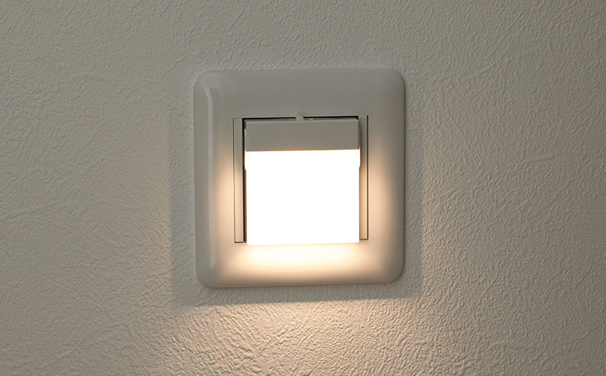停電すると自動的に点灯し、取り外せば懐中電灯として使える足元保安灯を設置。