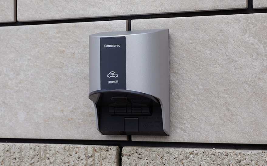 電気自動車の充電などを想定し、屋外コンセントを駐車スペースに設置。