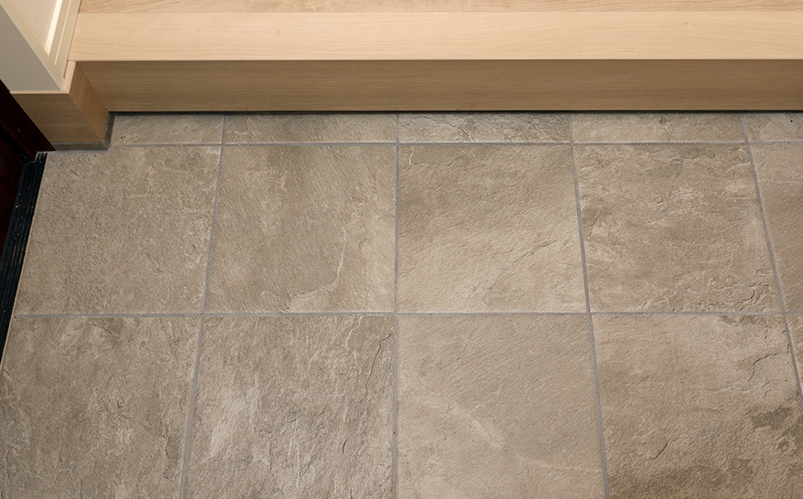 300角タイルを用い、気品ある表情で装う玄関床。