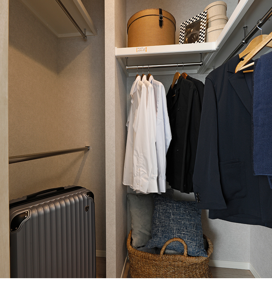 ご家族の衣類から帽子や鞄といった小物までまとめて収納できる大容量のクロゼット。