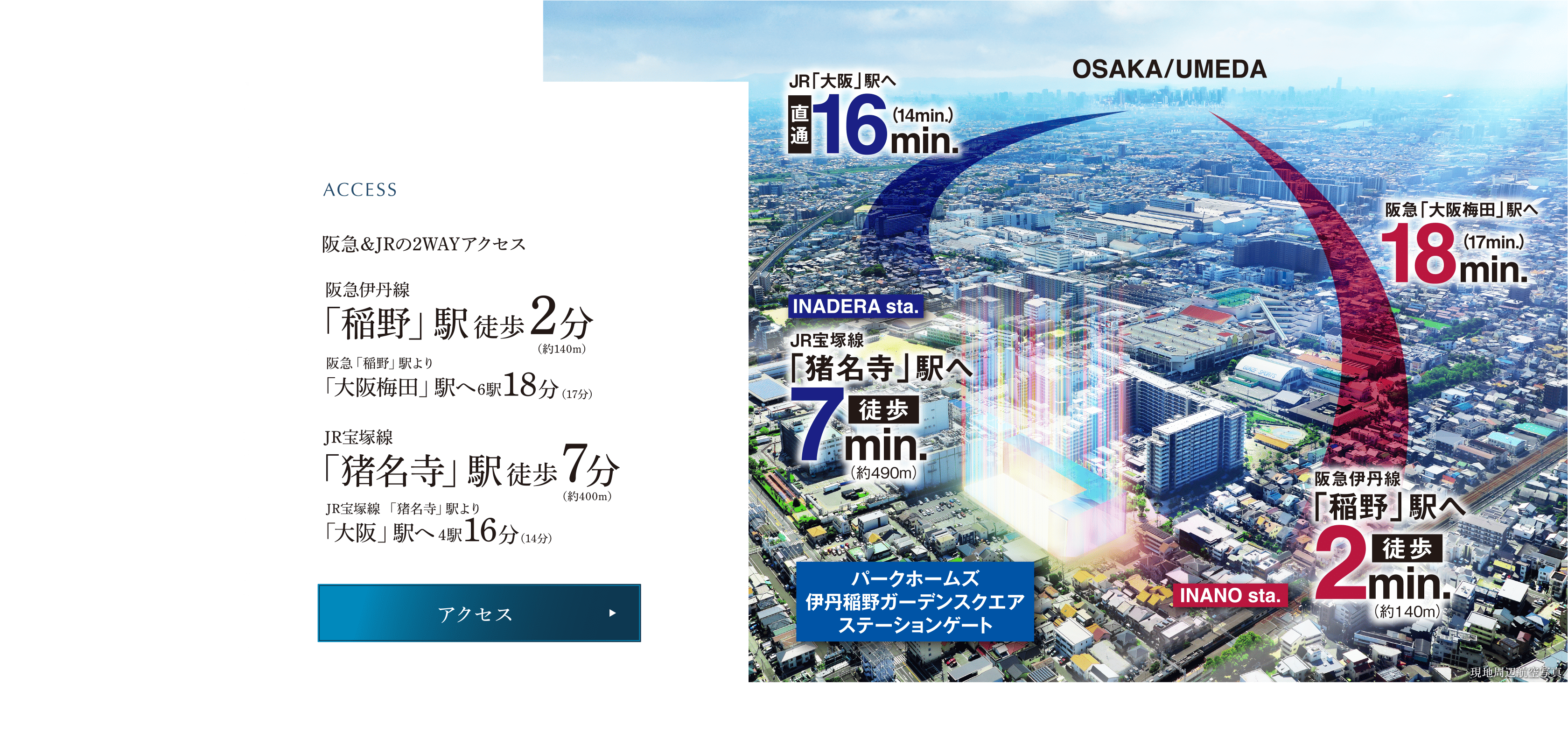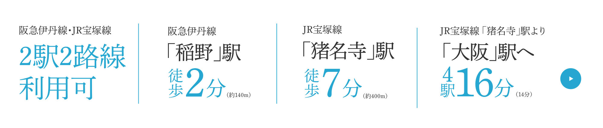 ※2.阪急「稲野」駅 徒歩2分・約140m(メインエントランスより)