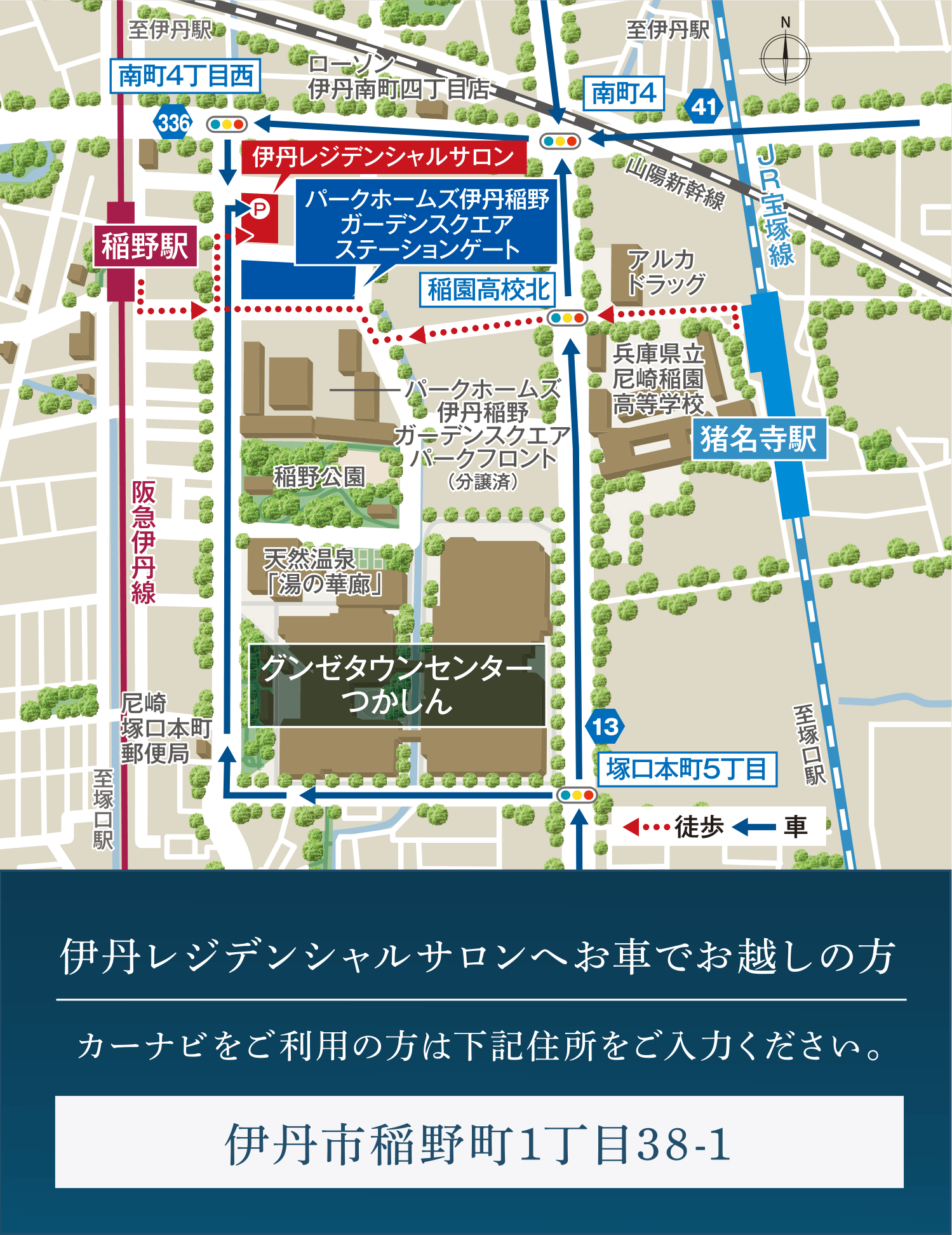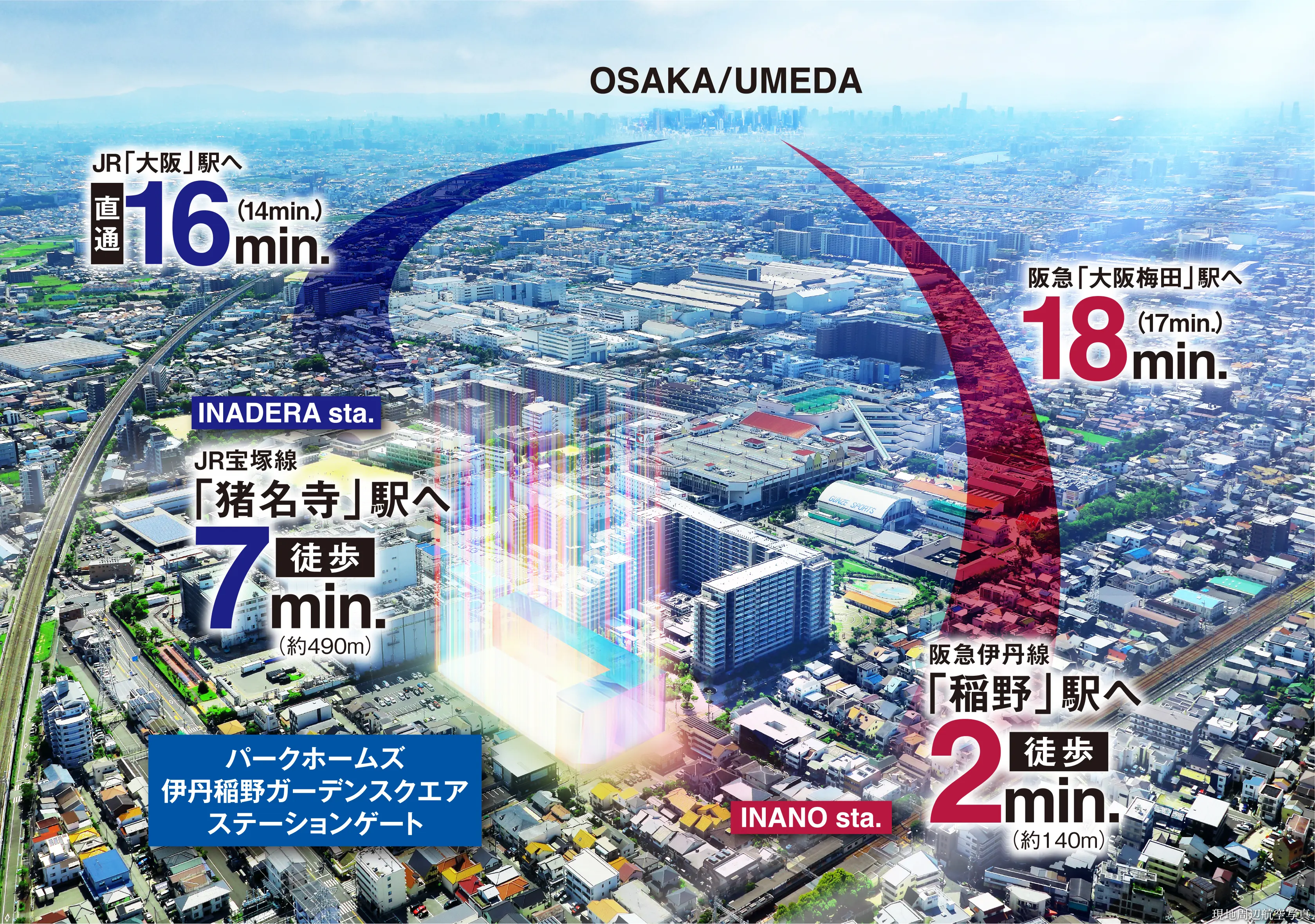※2.阪急「稲野」駅 徒歩2分・約140m(メインエントランスより)