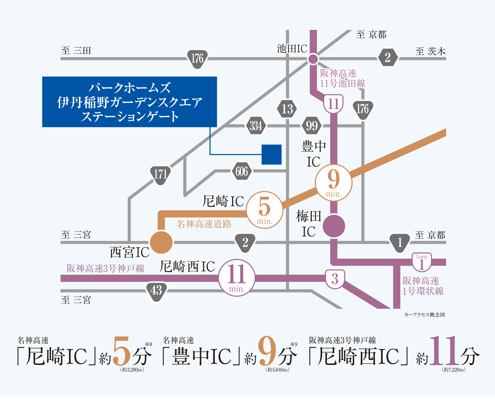 ※9.名神高速「尼崎IC」を利用。