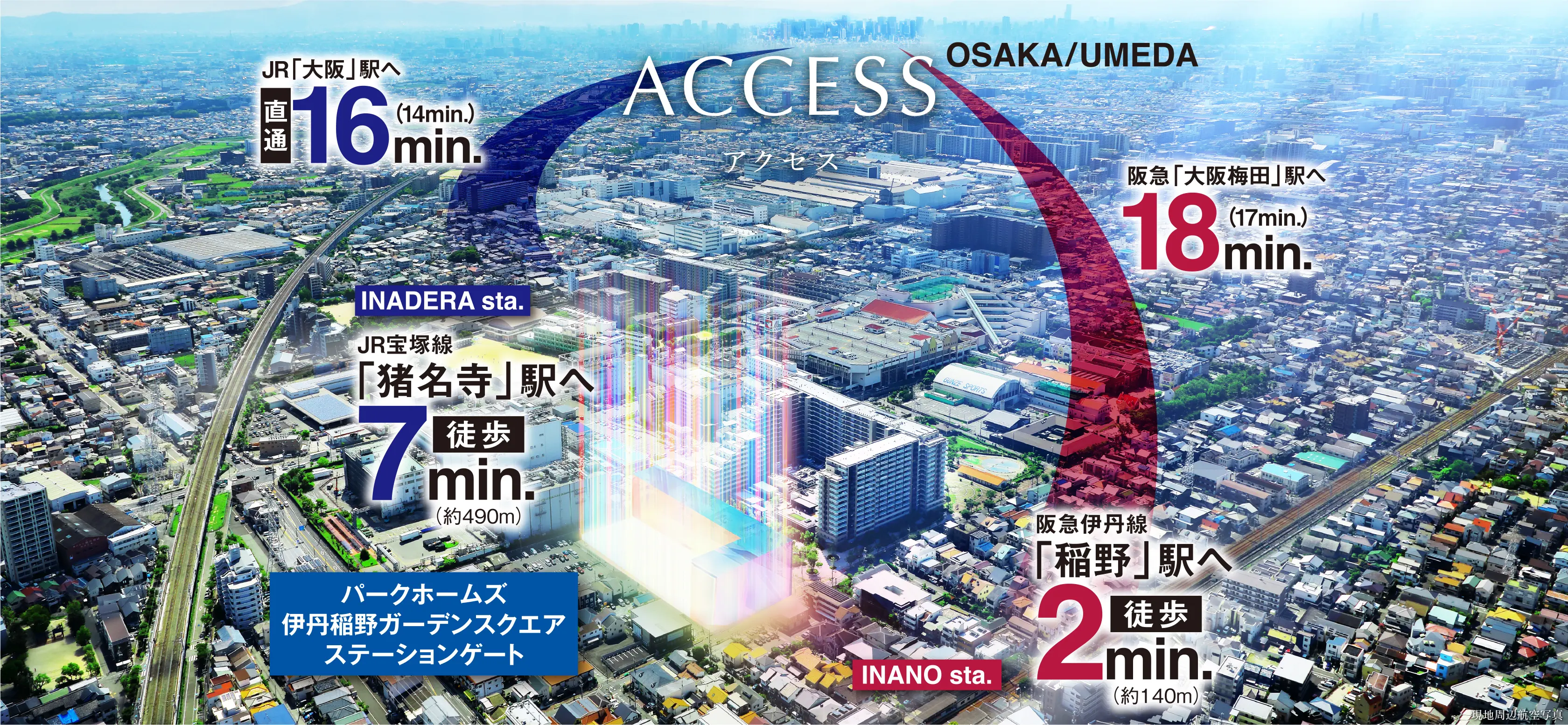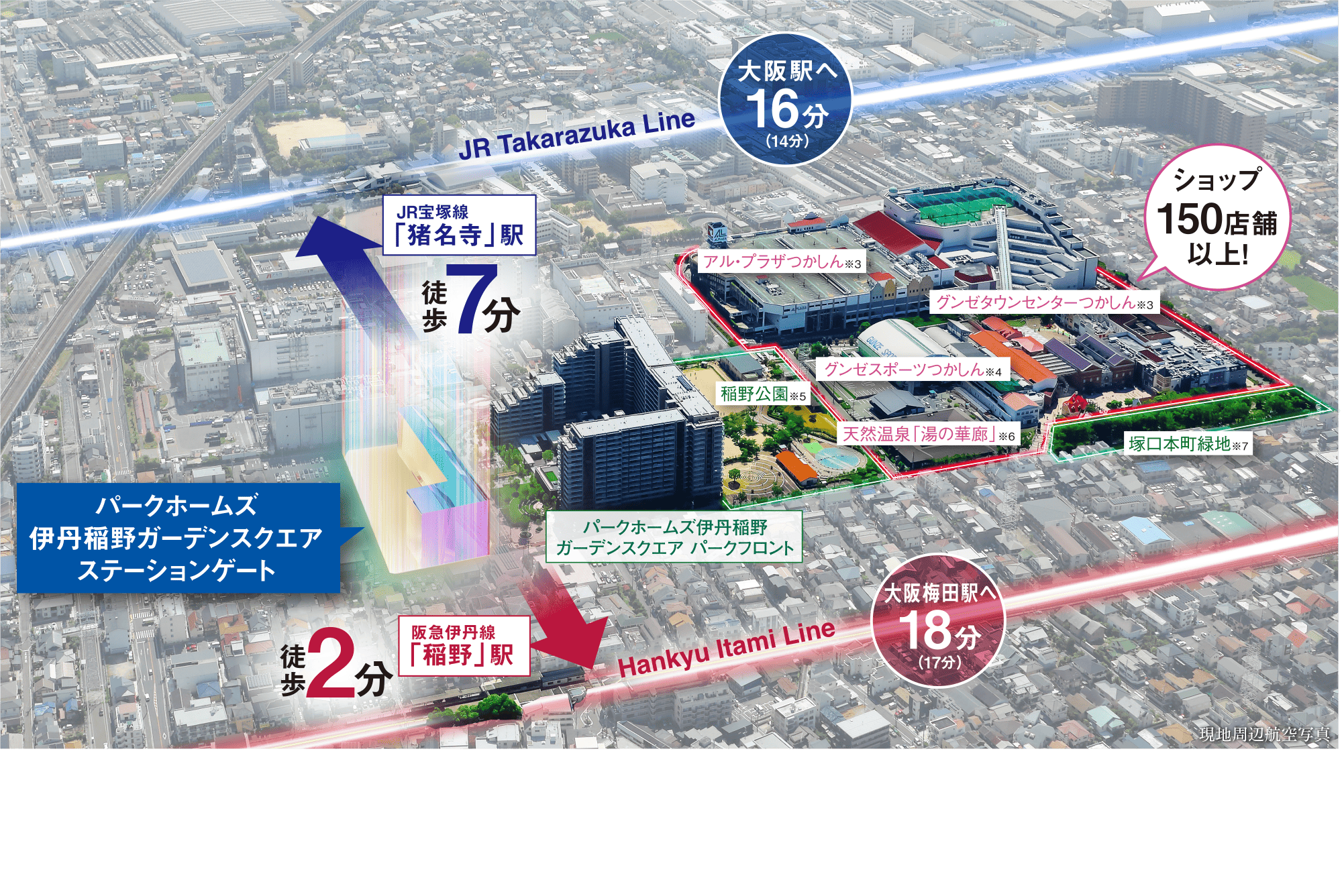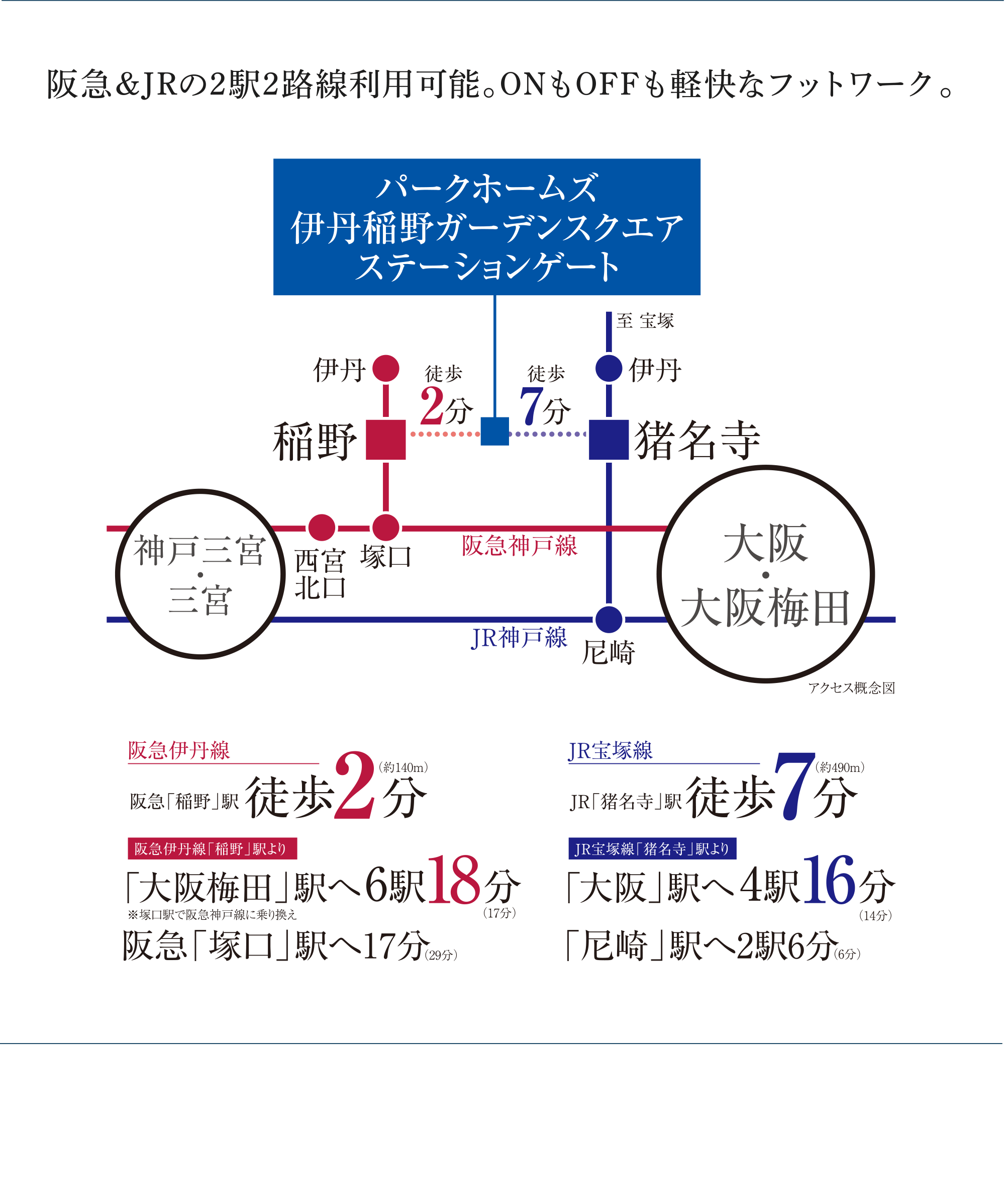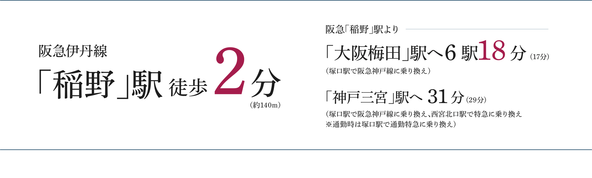 ※1.阪急「稲野」駅 徒歩2分・約140m(メインエントランスより)
