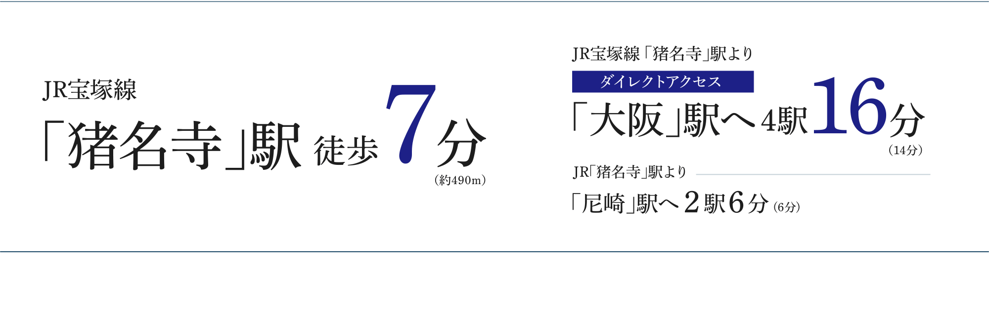 ※2.JR「猪名寺」駅 徒歩7分・約490m(CALMLY COURT 階段横出入口より)