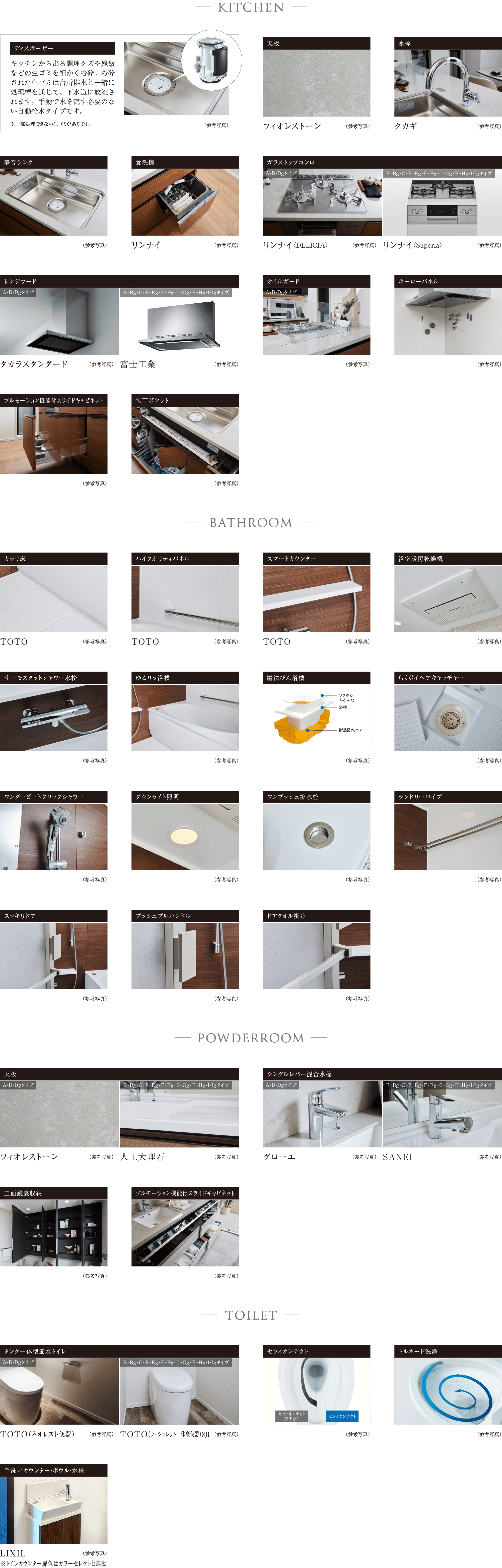 ※各設備の設置位置・数量・範囲はあらかじめ決められています。 ※タイプにより各設備の取付可能位置・サイズがあらかじめ決められています。 ※製造メーカーの都合上、商品が変更になる場合があります。 ※セレクトメニューのお申し込みには期限があります。 ※カラーセレクトは一部住戸のみ対象となります。 ※家具調度品は価格に含まれておりません。