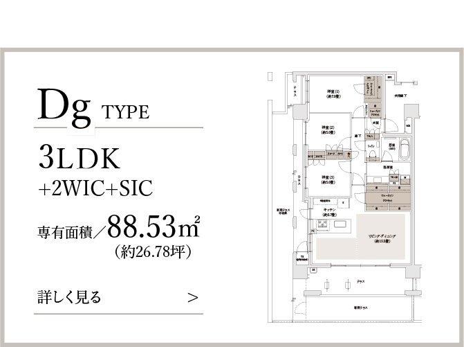 60㎡台~80㎡台の 豊富なプランをご用意。 ※バルコニーの使用については管理規約に従っていただきます。 ※WIC:ウォークインクロゼット、WTC=ウォークスルークロゼット、SIC:シューズインクロゼット、TR:トランクルーム(防災備蓄倉庫) ※掲載の図面は設計段階のものであり、変更になる場合があります。 ※住戸により仕様・形状が異なる場合があります。 ※J:畳数(畳数は「約」表示です。) ※セレクトメニューのお申し込みには期限があります。