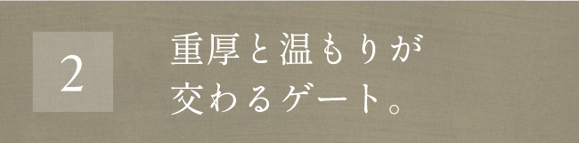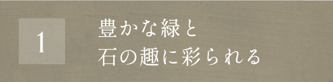 豊かな緑と石の趣に彩られたアプローチ。落ち着いた自然美に包まれながら歩む先には、上質な迎賓空間が広がっています。