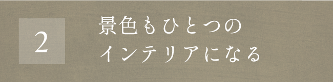 上質なソファや調度品がつくり出す寛ぎの空間。窓の向こうに広がる景色は、インテリアと響き合い、まるでひとつの設えのように日常を彩ります。