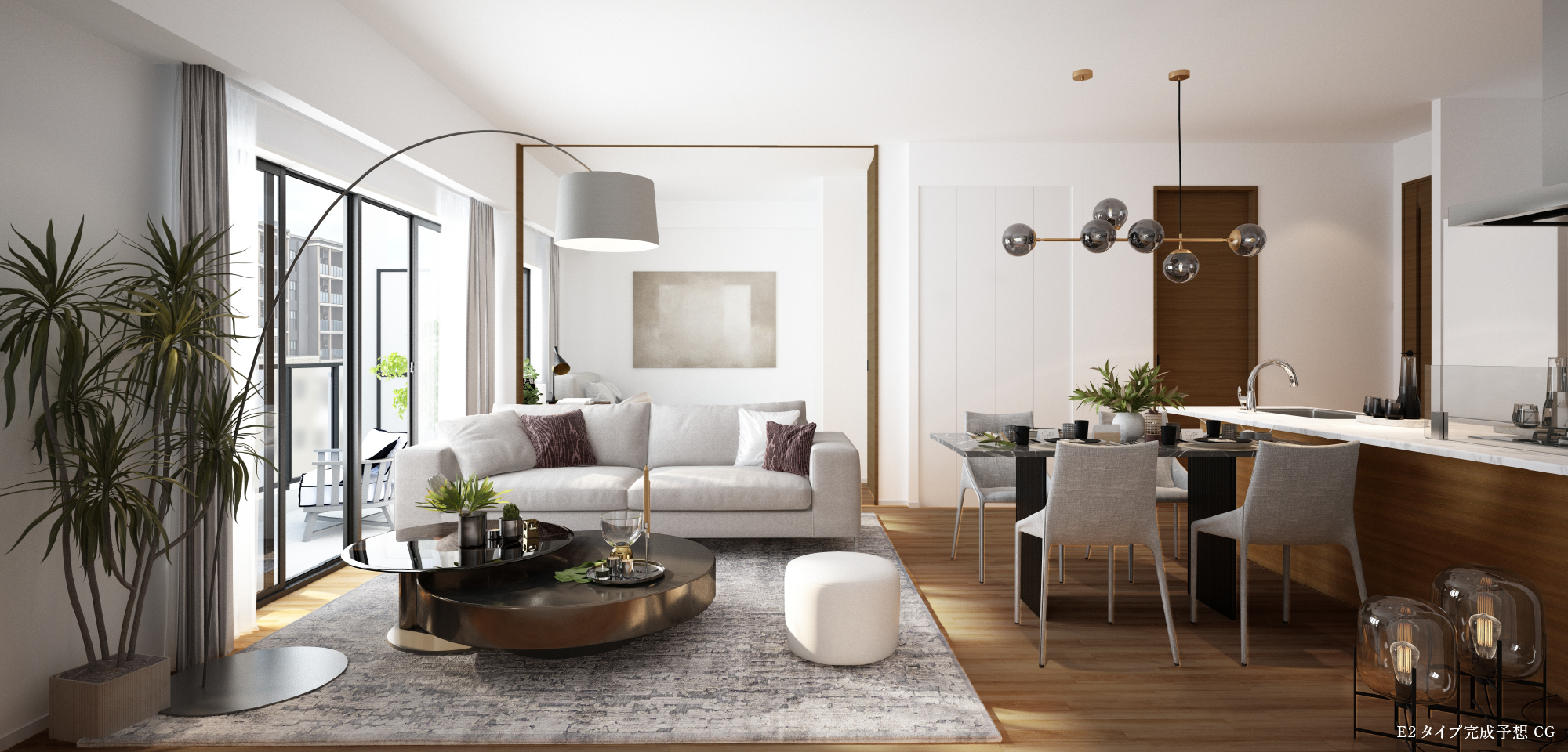 ※掲載のE2タイプ室内完成予想CGは計画段階の設計図を基に作成したもので、形状・色等は実際とは異なります。なお、形状の細部、設備機器等は表現しておりません。家具・調度品等は販売価格に含まれません。