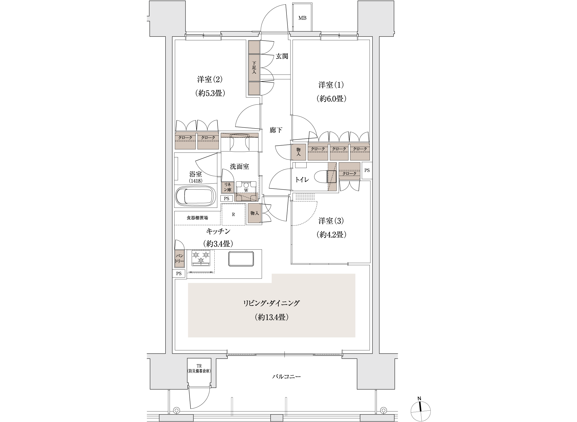 TR:トランクルーム ※掲載の間取図は計画段階の図面であり、今後変更になる場合がございます。 ※住戸により仕様・形状が異なる場合がございます。 ※掲載の概念図は、計画段階の図面を基に描き起こしたもので、形状・色等は実際とは異なります。なお、形状の細部、設備機器等は表現しておりません。 ※代表タイプの間取りを表示しております。販売住戸の間取りについては本広告時の物件概要の[販売住戸の一覧]をご覧ください。