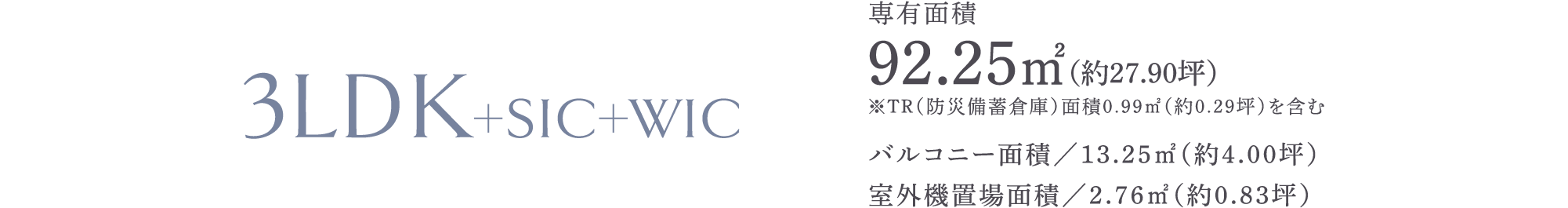 ※WIC:ウォークインクロゼット SIC:シューズインクロゼット TR:トランクルーム ※掲載の間取図は計画段階の図面であり、今後変更になる場合がございます。 ※住戸により仕様・形状が異なる場合がございます。 ※掲載の概念図は、計画段階の図面を基に描き起こしたもので、形状・色等は実際とは異なります。なお、形状の細部、設備機器等は表現しておりません。 ※代表タイプの間取りを表示しております。販売住戸の間取りについては本広告時の物件概要の[販売住戸の一覧]をご覧ください。