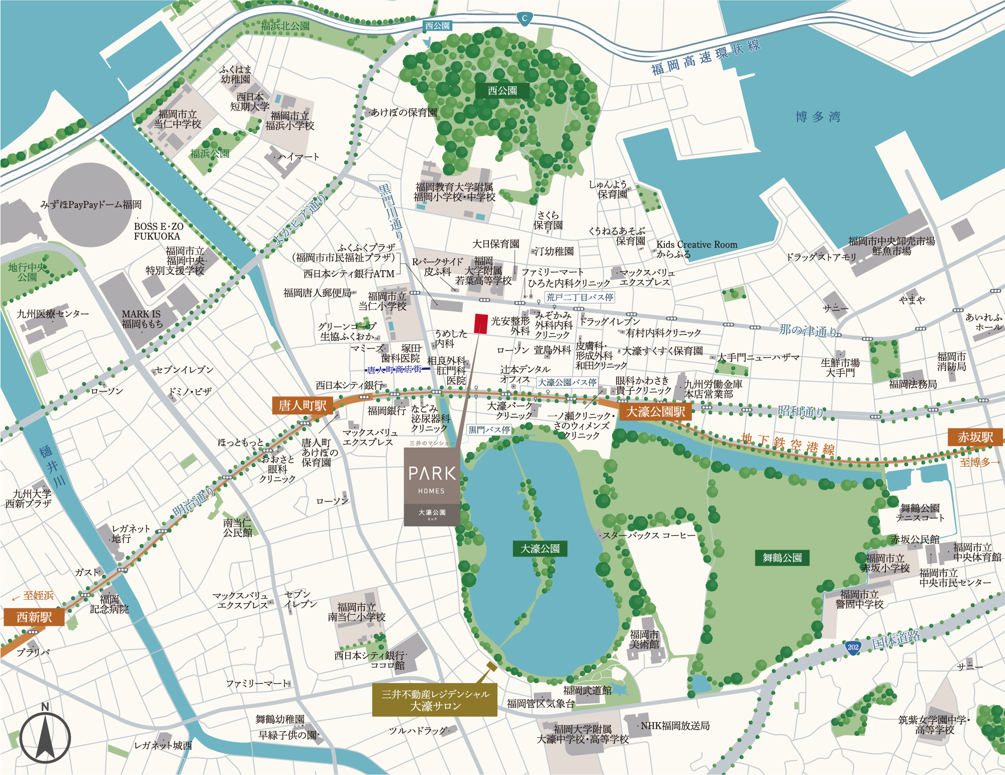 徒歩圏に三つの個性豊かな公園が揃うこの場所は、心も身体も健やかに過ごせる特別な環境。毎日をアクティブに楽しむことができます。都心にありながら自然と寄り添う、贅沢な日常がここから始まります。
