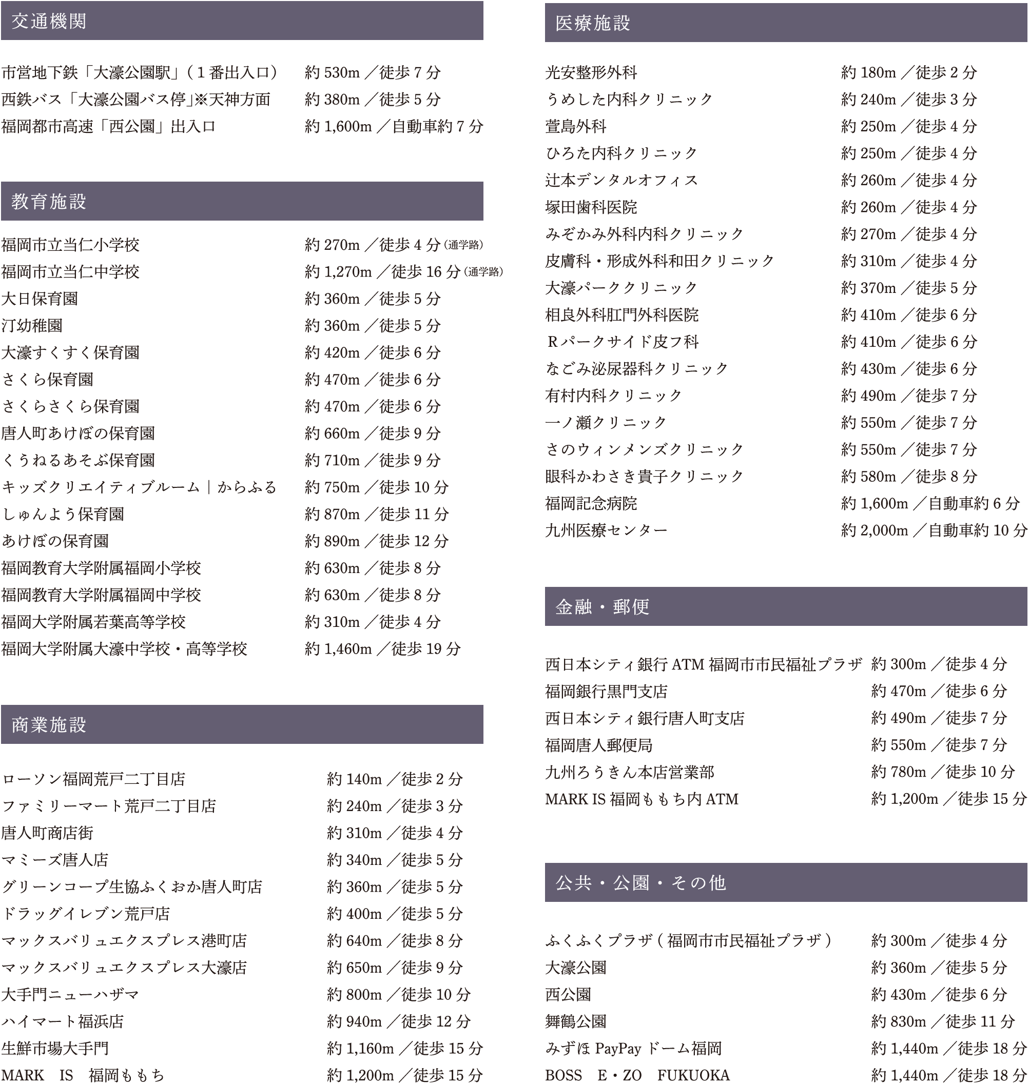 ※徒歩の所要時間は、エントランスからの地図上での計測で、80mを1分として換算したものです。