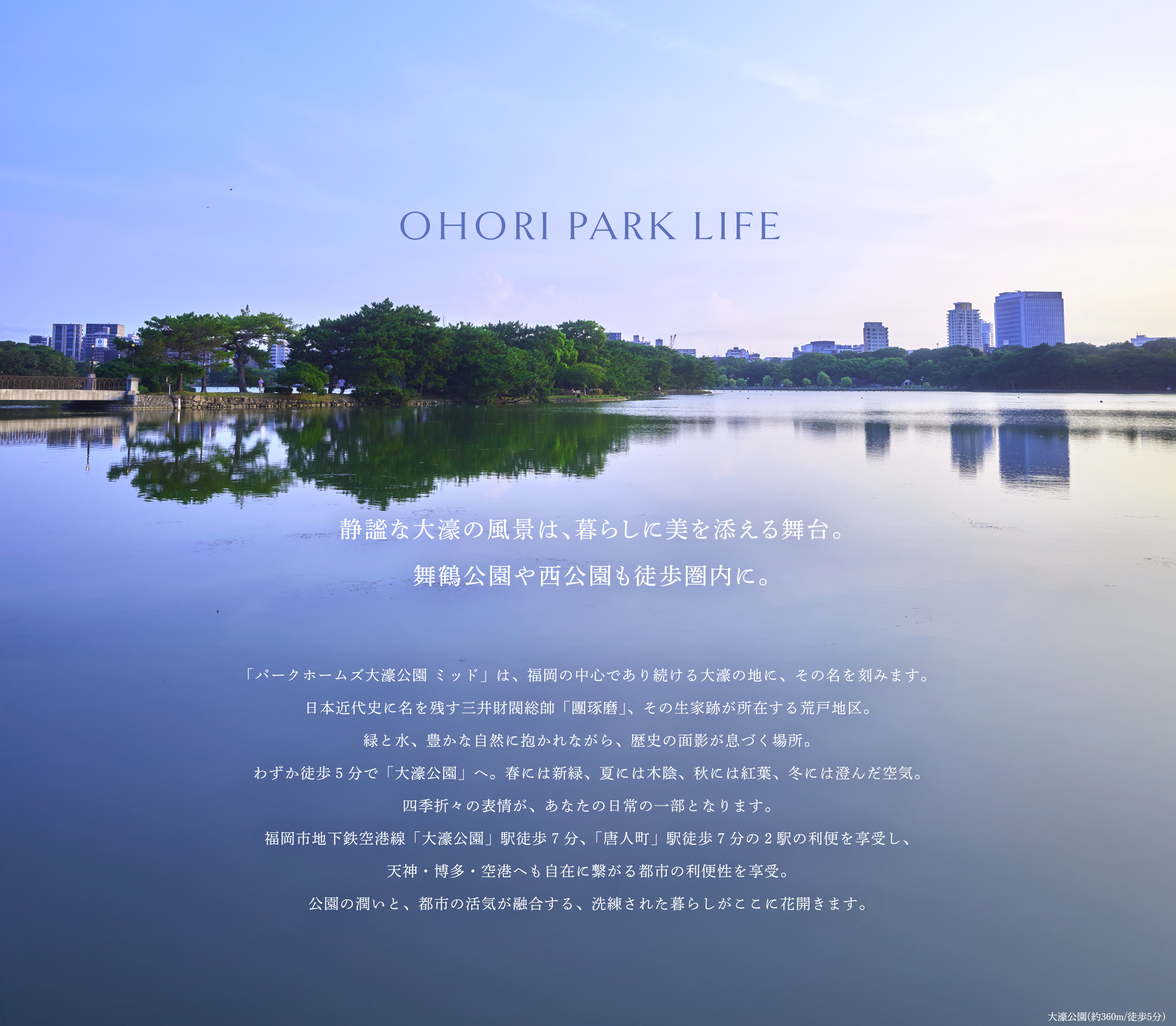 緑と水の静けさに抱かれながら、都心の活気を間近に享受できるこの地には、豊かな暮らしと美しい景観が響き合う時間がある。
