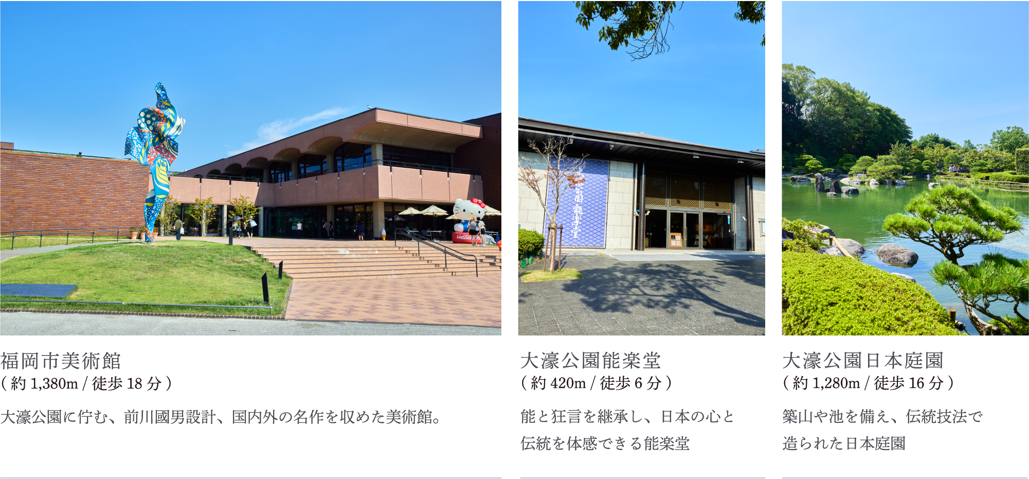 大濠公園の水辺でリフレッシュし、舞鶴公園で四季の自然を楽しみ、西公園では静かな散策を愉しむ。