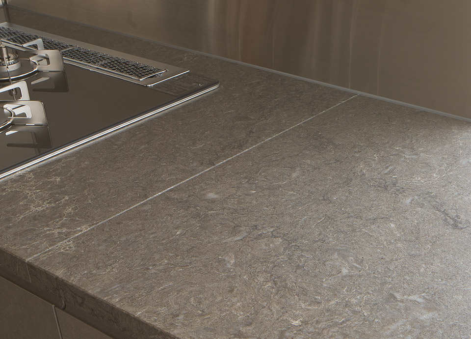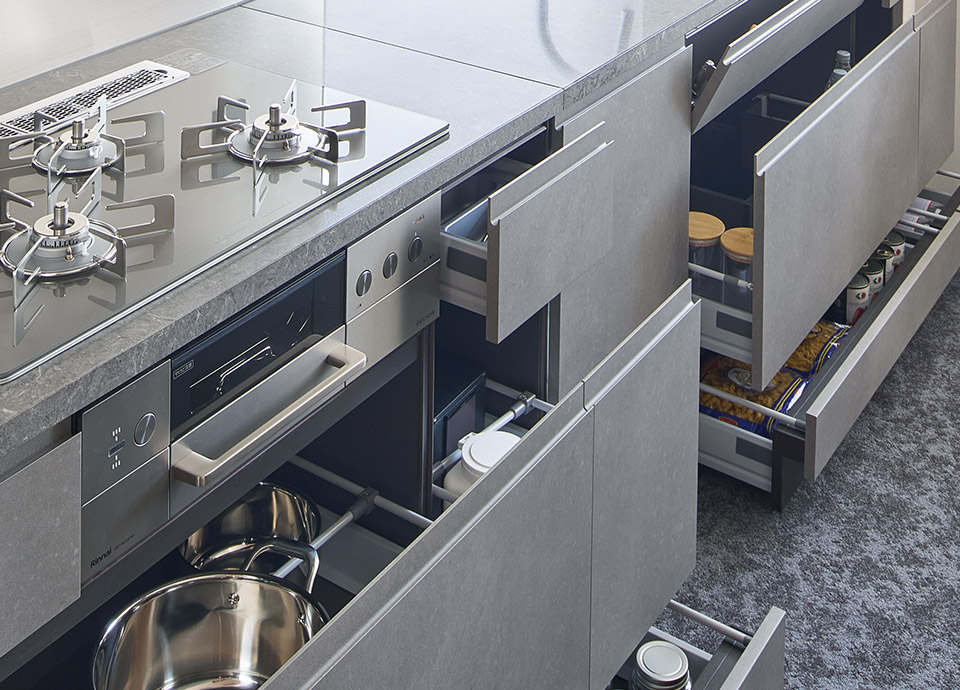 シーザーストーンキッチン天板人造石の高い質感、美しさ、耐久性を兼ね備えたシーザーストーンの天板を採用しました。 *タイプにより継ぎ目ができる場合がございます。