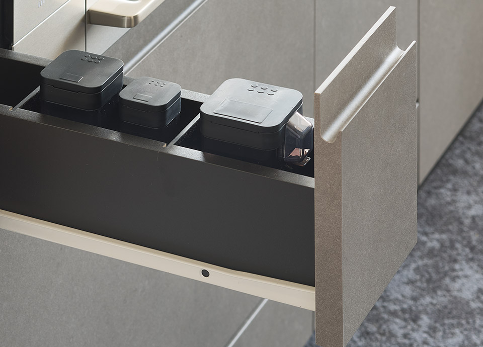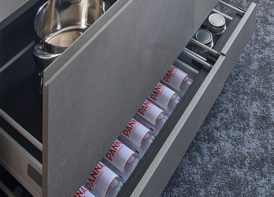 ブルモーションスライド扉や引き出しの開閉時に、自動でゆっくりと静かに閉まるようにする機能付きです。 *床はフローリングになります。