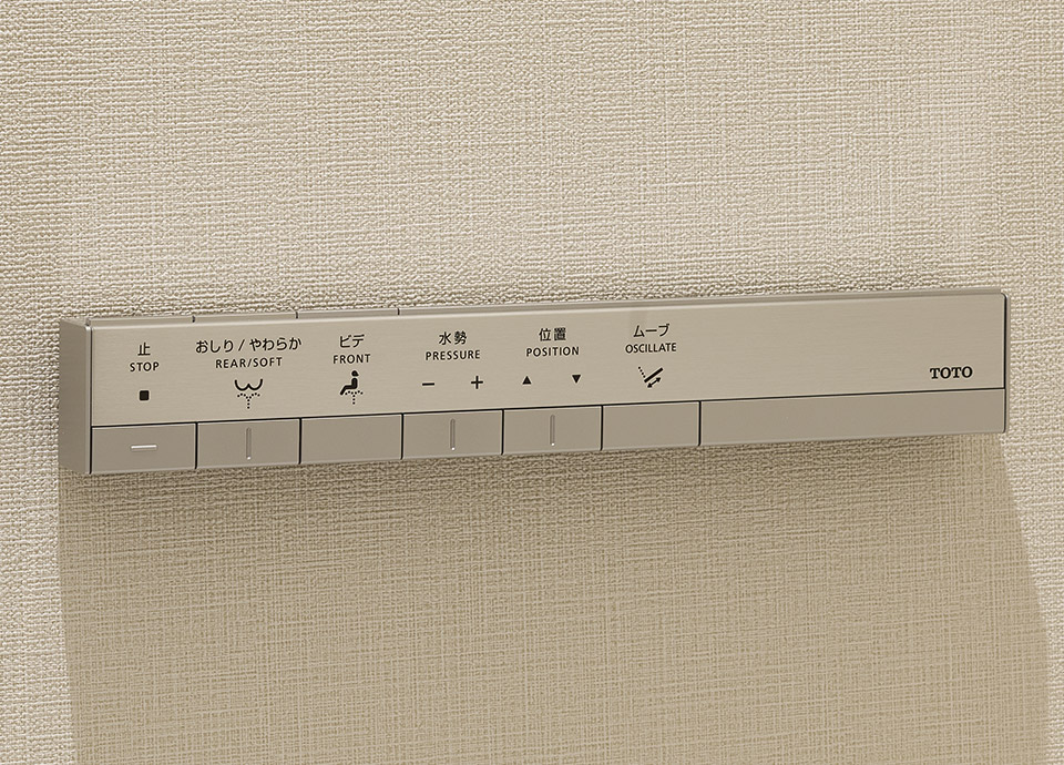 スティックリモコンスタイリッシュな形状のスティックリモコン。水勢の強弱・洗浄位置・温水の温度をお好みの設定で登録できる使いやすさと美しさに配慮したデザインです。