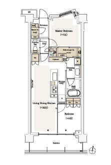 ※LDKの畳数にはキッチンの畳数を含みます。※キッチン部分の畳数には、冷蔵庫置場・カップボードが含まれています。