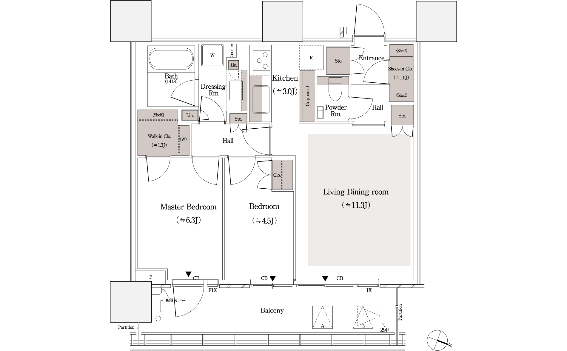 (約17.73坪)2LDK+WIC+SIC<4〜29F>