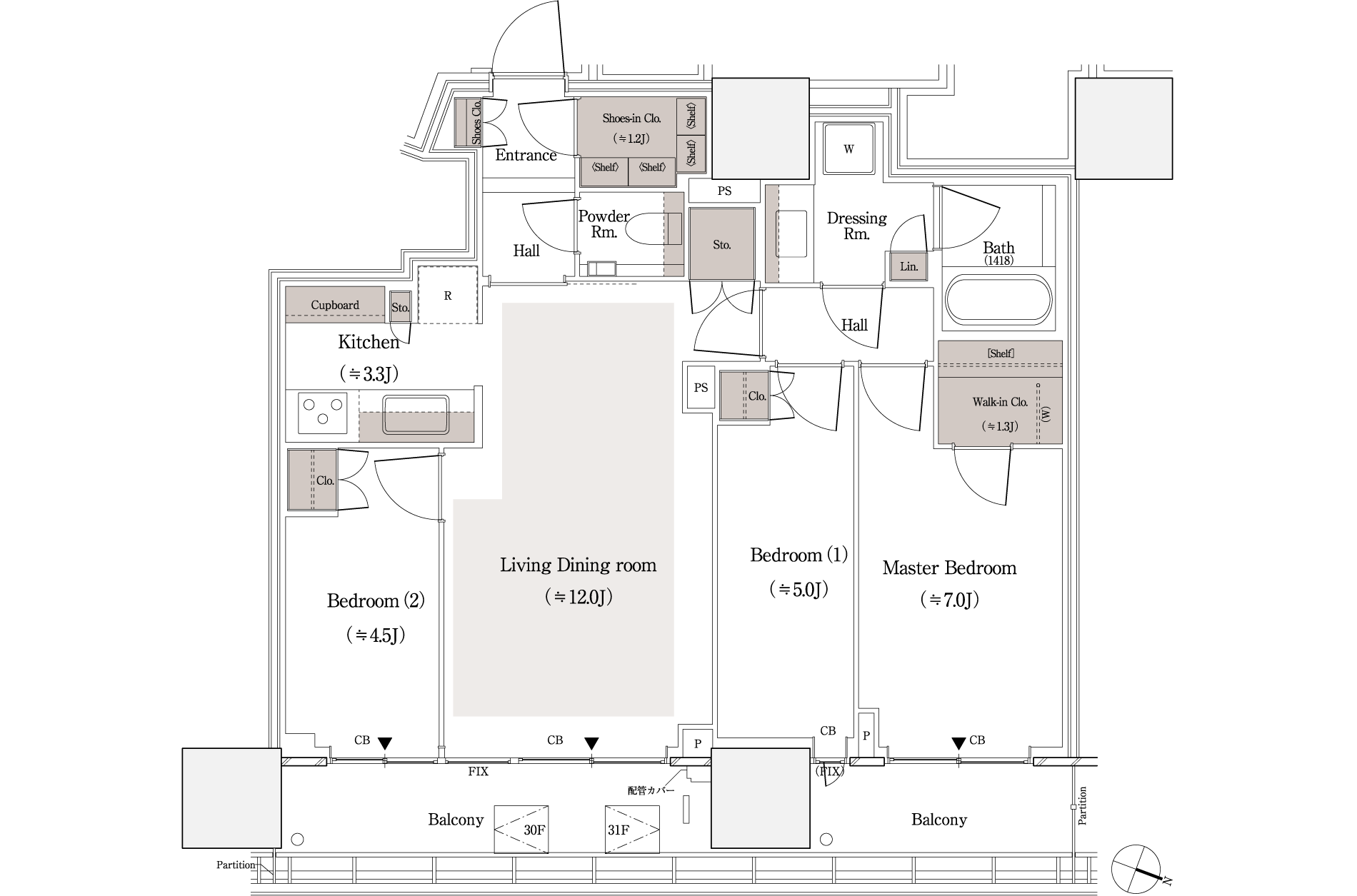 (約22.51坪)3LDK+WIC+SIC<30〜32F>