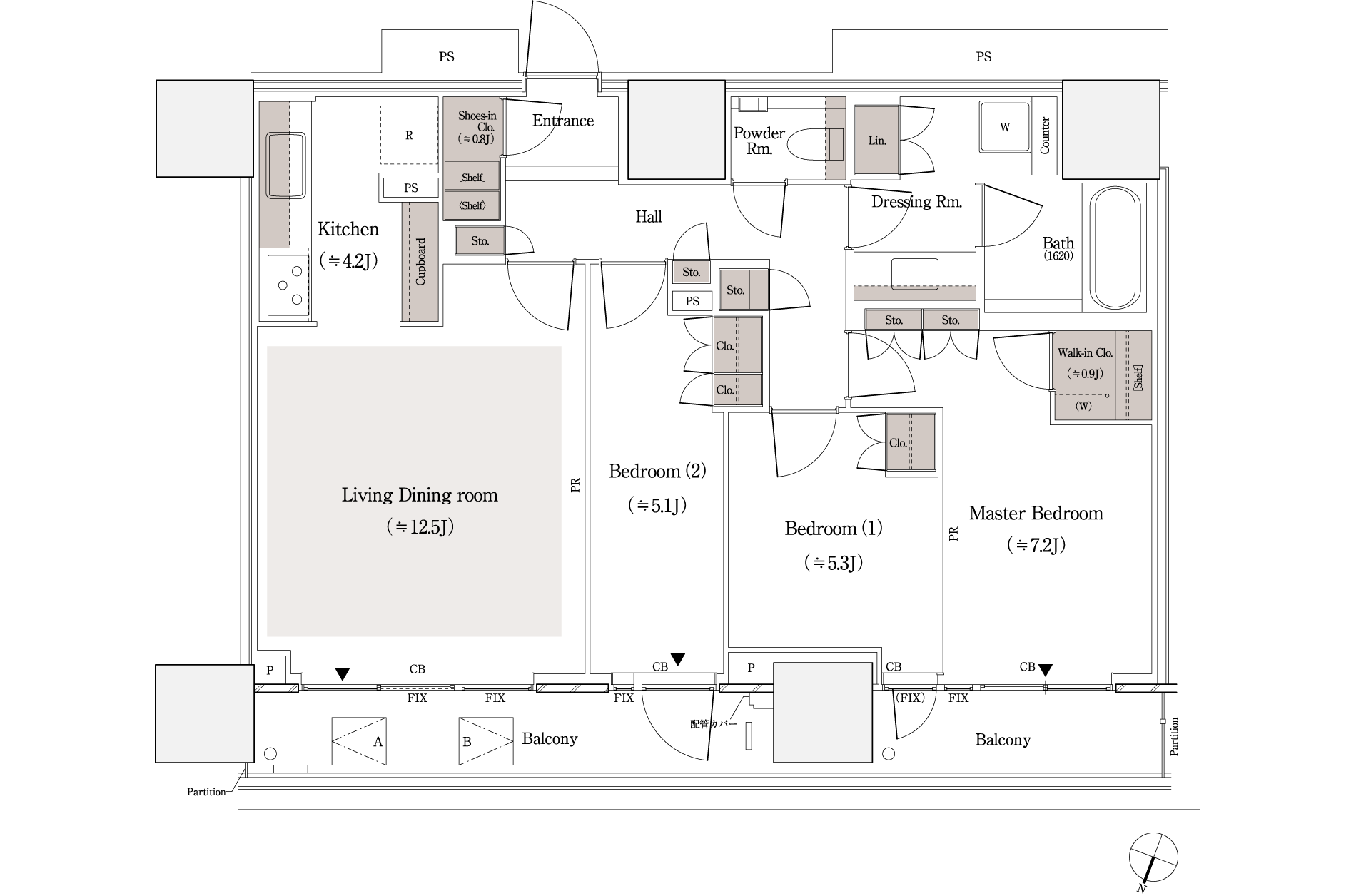 (約27.35坪)3LDK+WIC+SIC<30〜32F>