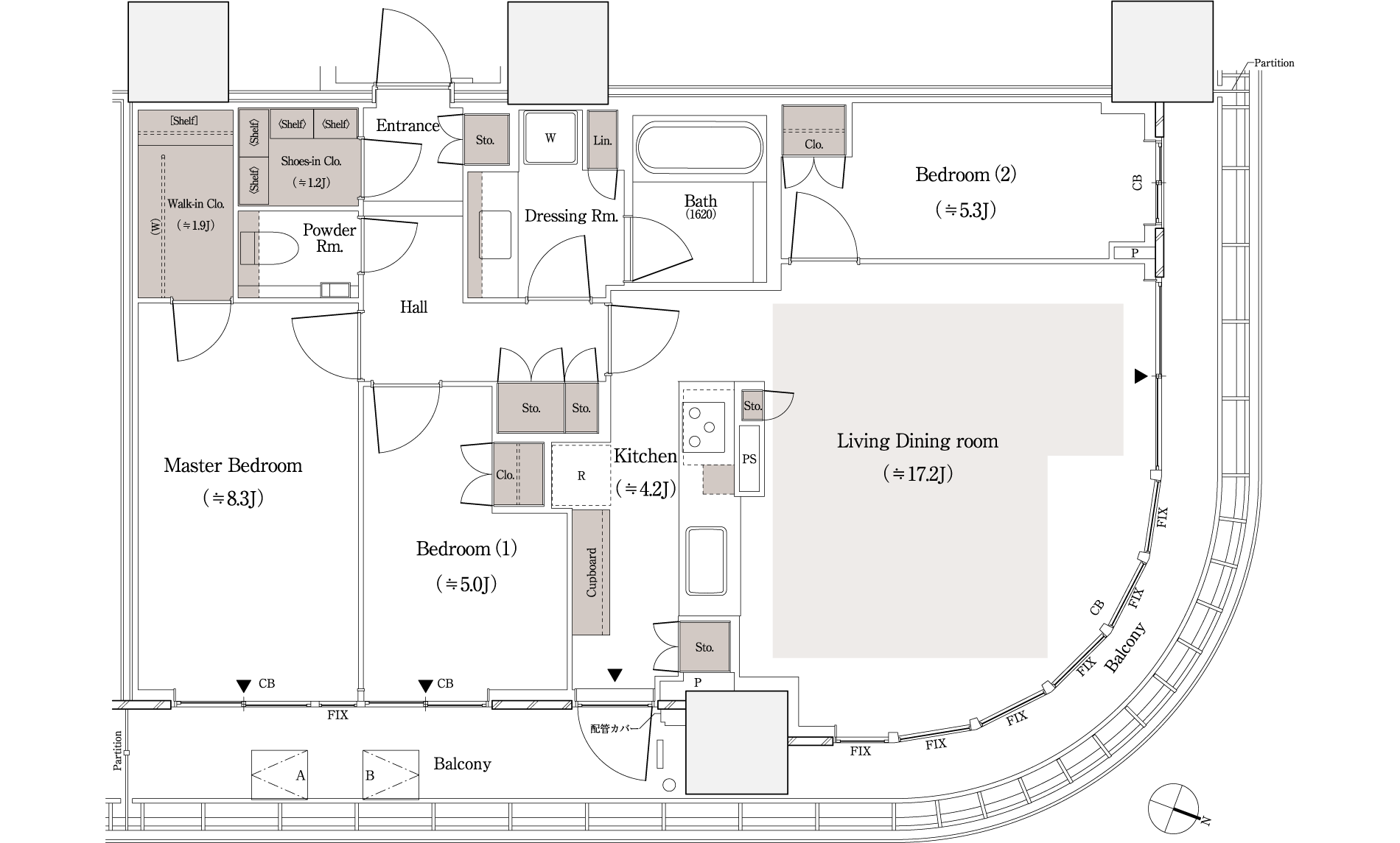 ※掲載の図面は設計段階の図面を基に描いたもので、実際とは異なります。また、施工上の理由および改良等により変更となる場合がございます。