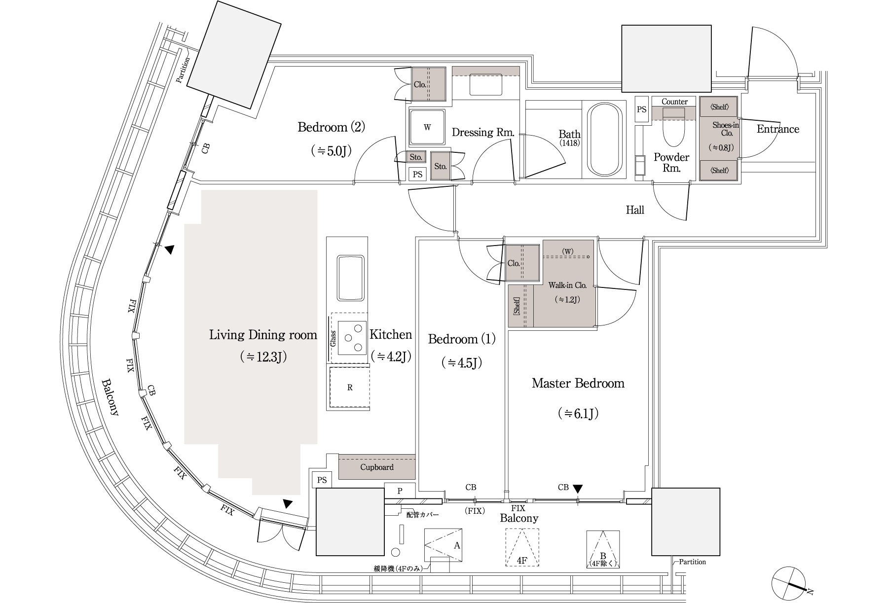 OUTLINE MAP ENTRY TOPトップページ CONCEPTコンセプト LOCATIONロケーション DESIGNデザイン ACCESSアクセス VIEW&PLAN眺望&プラン QUALITYクオリティ EQUIPMENTNEW!設備仕様 MAP現地案内図 OUTLINE物件概要 ENTRY物件エントリー PLAN 77-Hsetype 専有面積:77.14㎡(約23.33坪)バルコニー面積:22.77㎡~24.33㎡ ※バルコニー面積は住戸の階数により異なります。 3LDK+WIC+SIC <4〜29F> 収納 床暖房 J=約畳数WIC: ウォークインクロゼット SIC:シューズインクロゼット ※掲載の図面は設計段階の図面を基に描いたもので、実際とは異なります。また、施工上の理由および改良等により変更となる場合がございます。 ※住戸により仕様・形状が異なる場合がございます。 ※掲載のイメージイラストに描かれている家具・調度品は販売価格に含まれておりません。