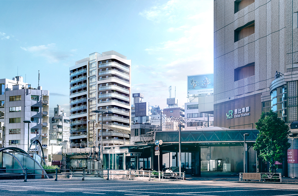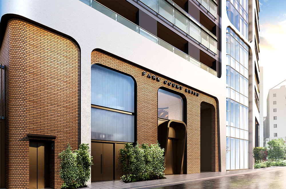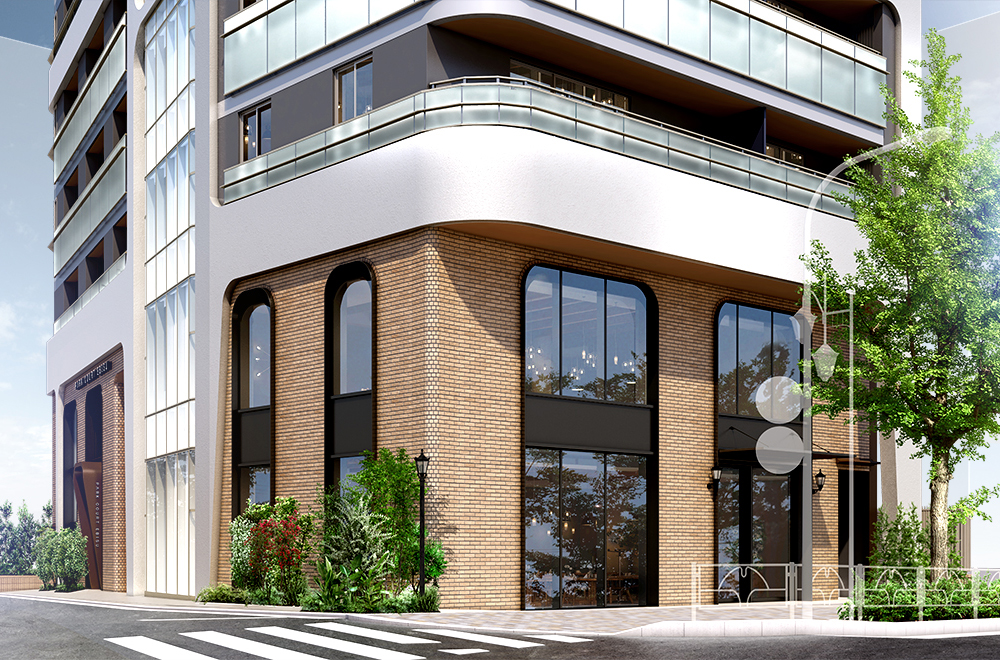 ※掲載の完成予想CGは、計画段階の図面を基に描き起こしたもので、形状・色等は実際とは異なります。なお、形状の細部、設備機器等は表現しておりません。表現されている植栽は初期の生育期間を経た状態のものを想定して描いており、竣工時は植物の生育を見込んで必要な間隔をとって植えております。施工上の都合により、設定位置・植高・本数等変更となる場合があります。共用施設をご利用の際は管理規約に従っていただきます。共用部の家具、調度品等は計画段階の内容で今後変更となる場合がございます。家具、調度品等は販売価格に含まれません。外観完成予想CG1は、現地周辺写真(2023年11月撮影)に合成したものです。外観完成予想CG2は、敷地内のみを描写しております。