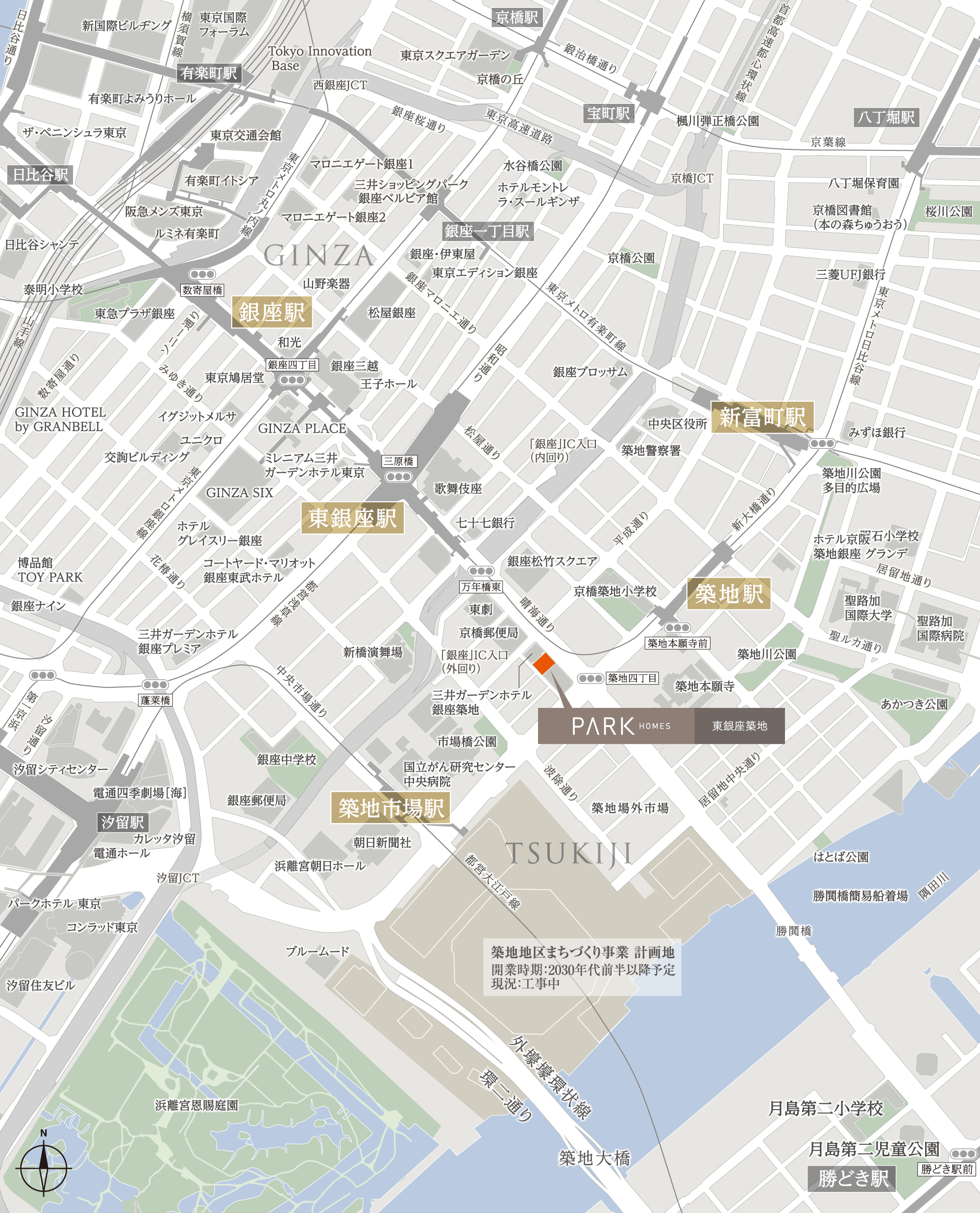 ※1:築地地区まちづくり事業。開業時期:2030年代前半以降予定 現況:工事中