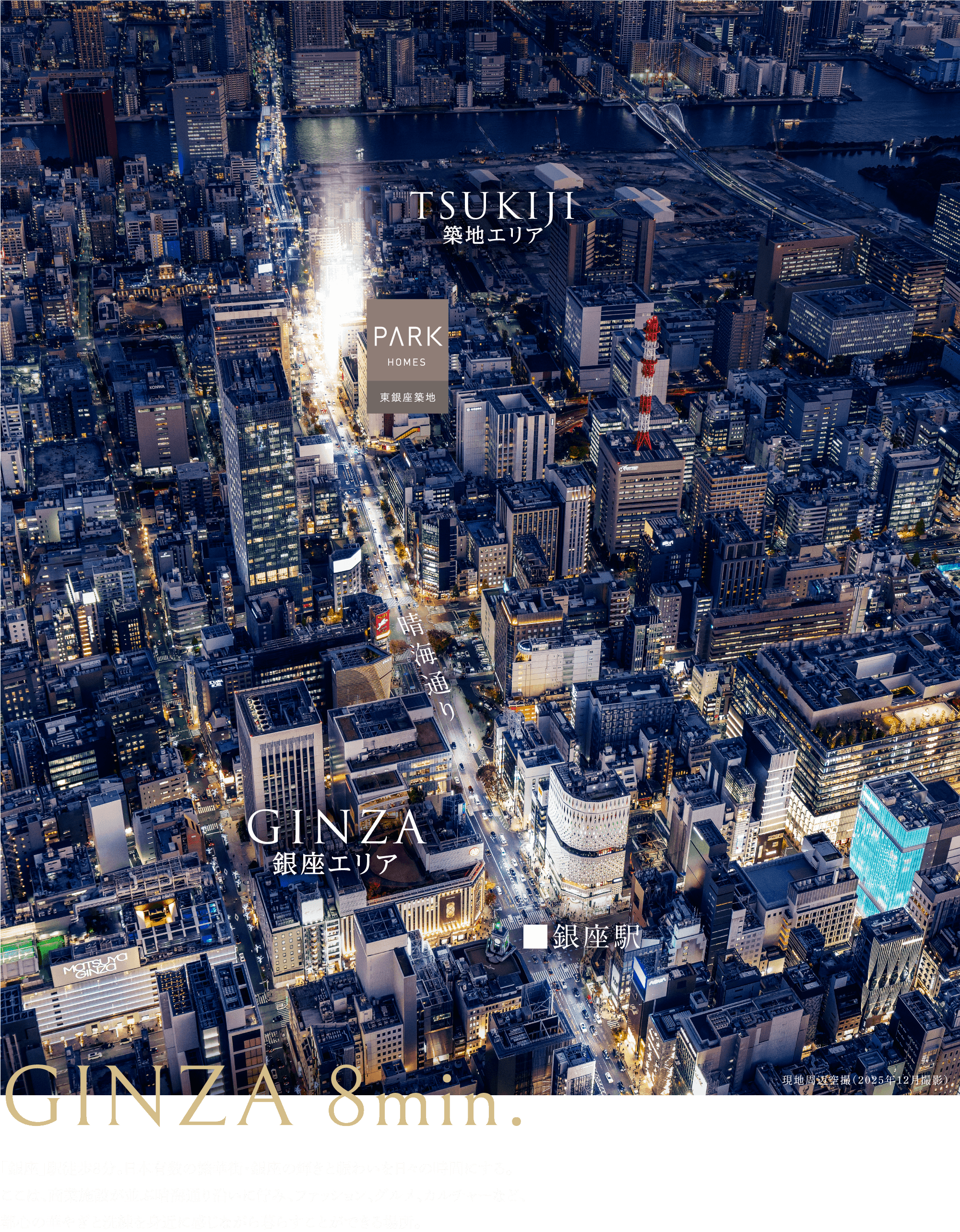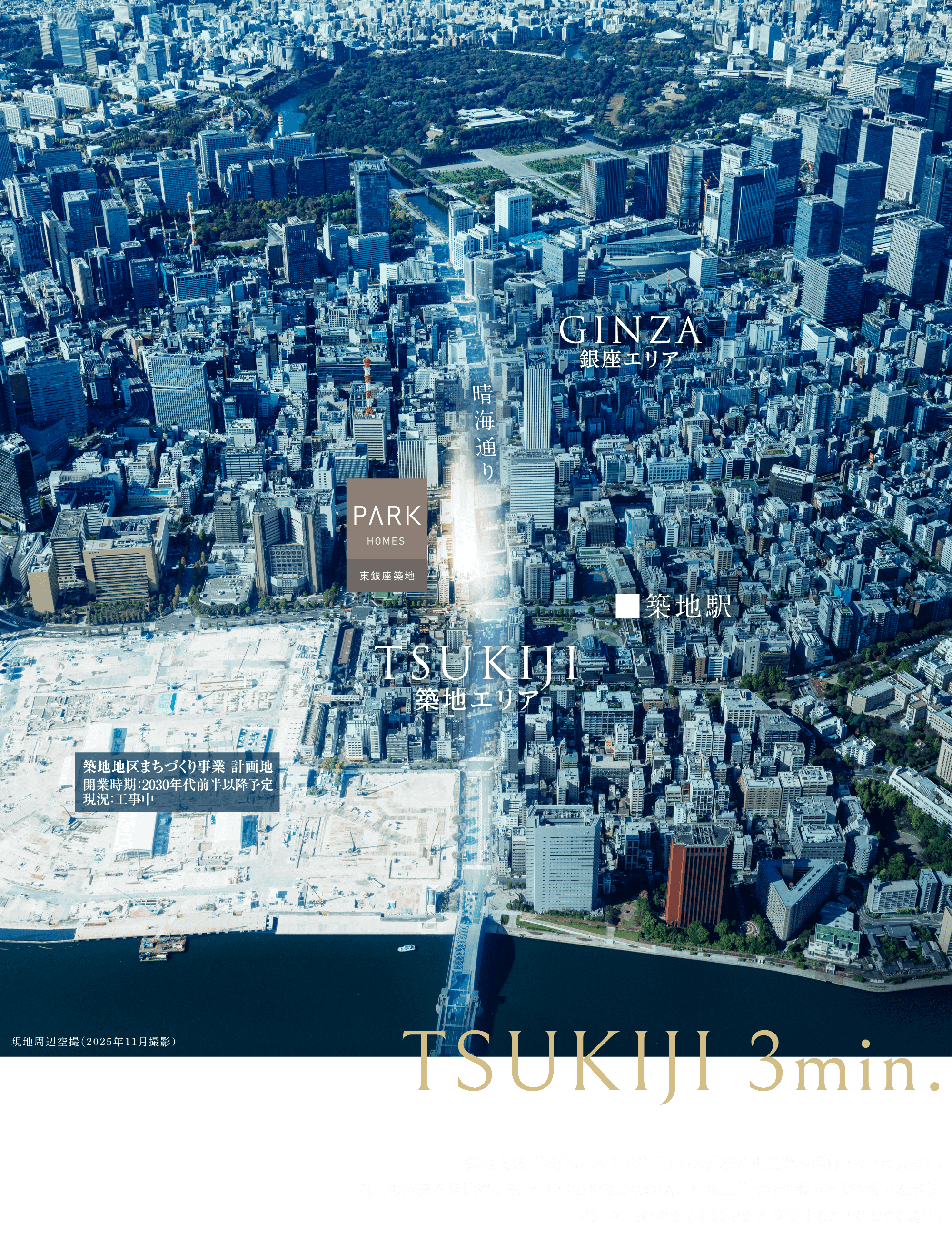 ※掲載の現地周辺空撮写真(2025年12月撮影)は、一部CG処理を施したもので、実際とは多少異なる場合があります。また、現地の位置を表現した光は高さや規模を示すものではありません。