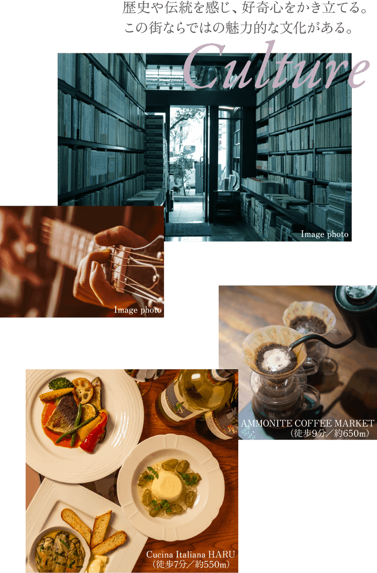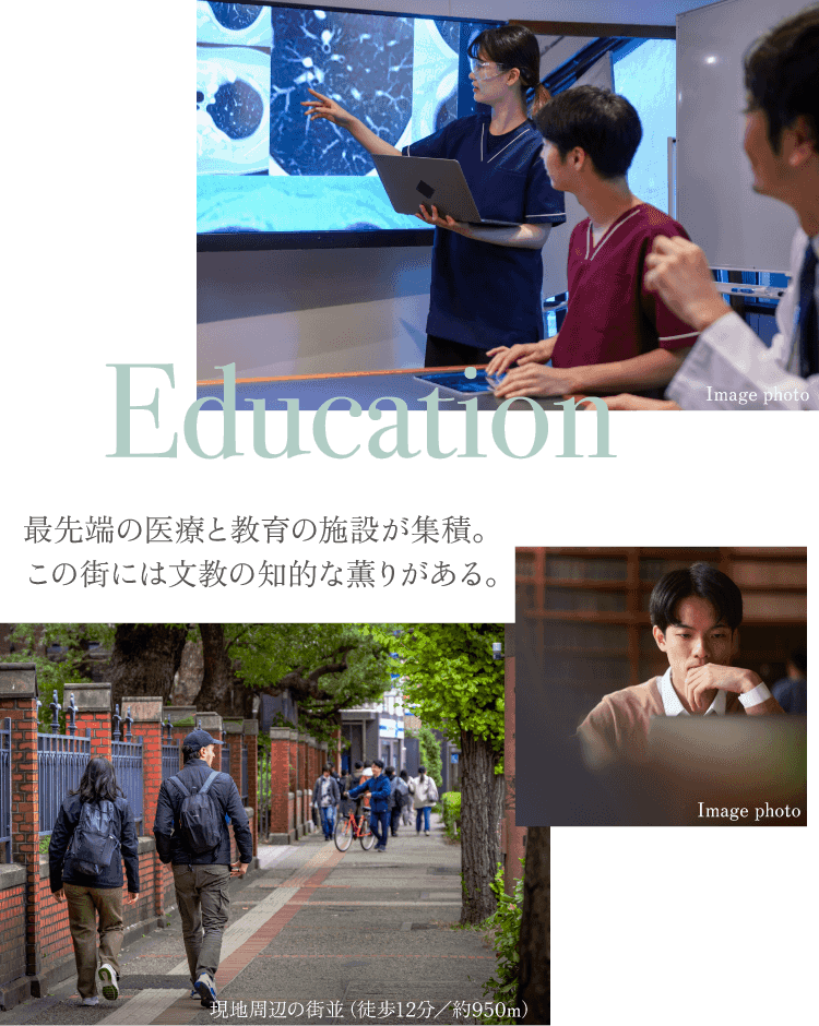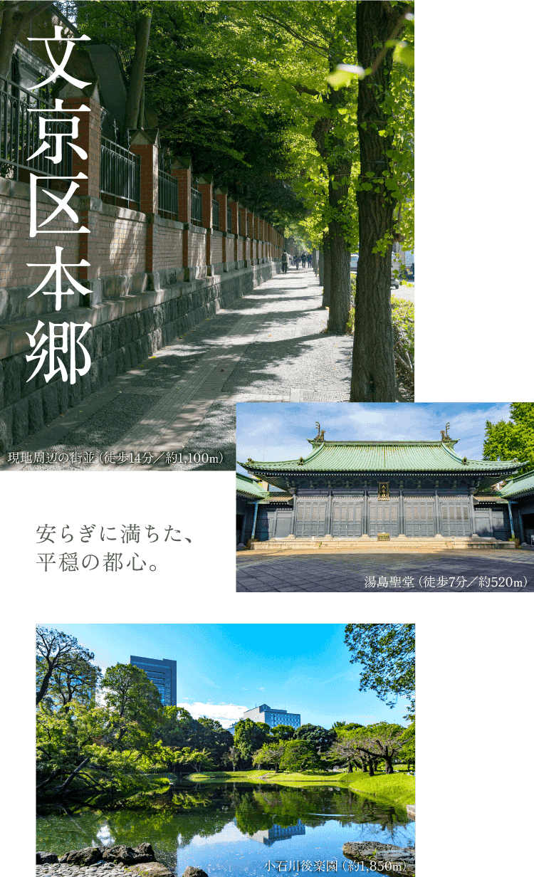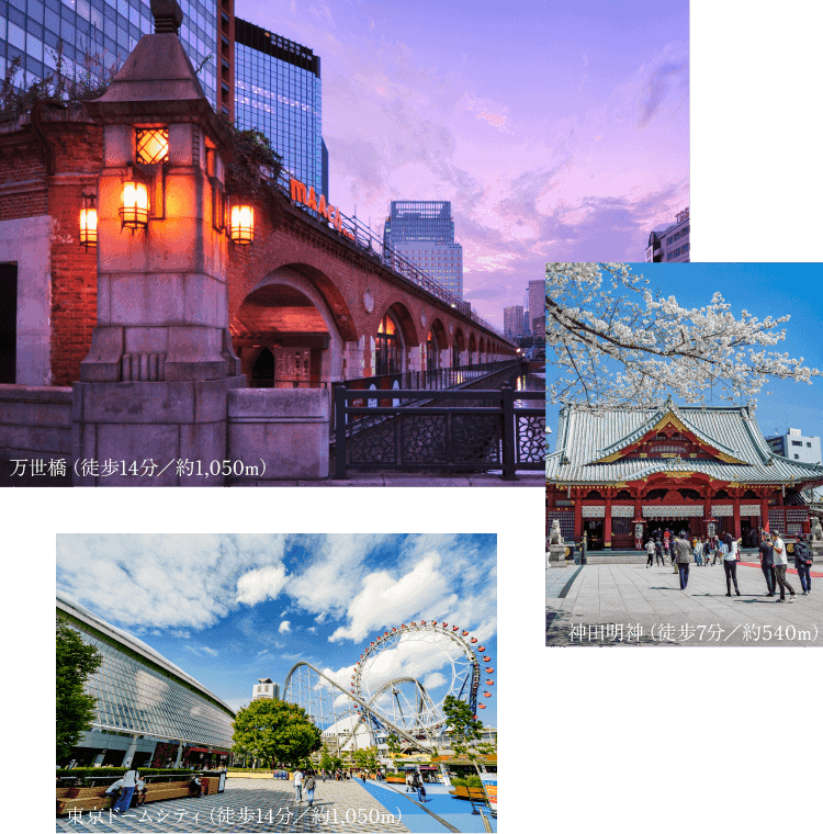 左:「御茶ノ水」駅(徒歩8分/約570m)右:現地周辺の街並(徒歩14分/約1,100m)