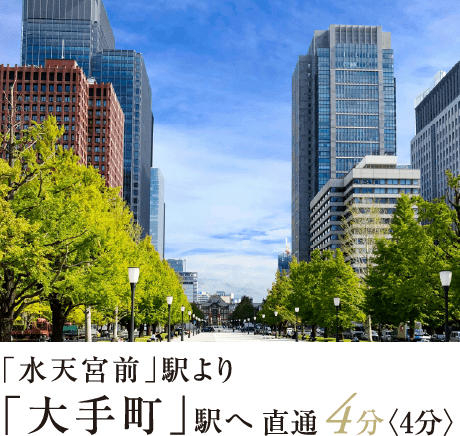 JR総武本線「新日本橋」駅より直通。〈日中時も通勤時と同経路〉