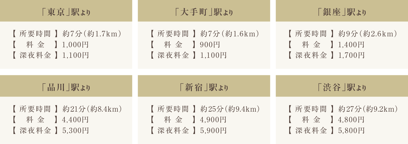 ※掲載のタクシー情報は道路事情・ルートにより異なります。