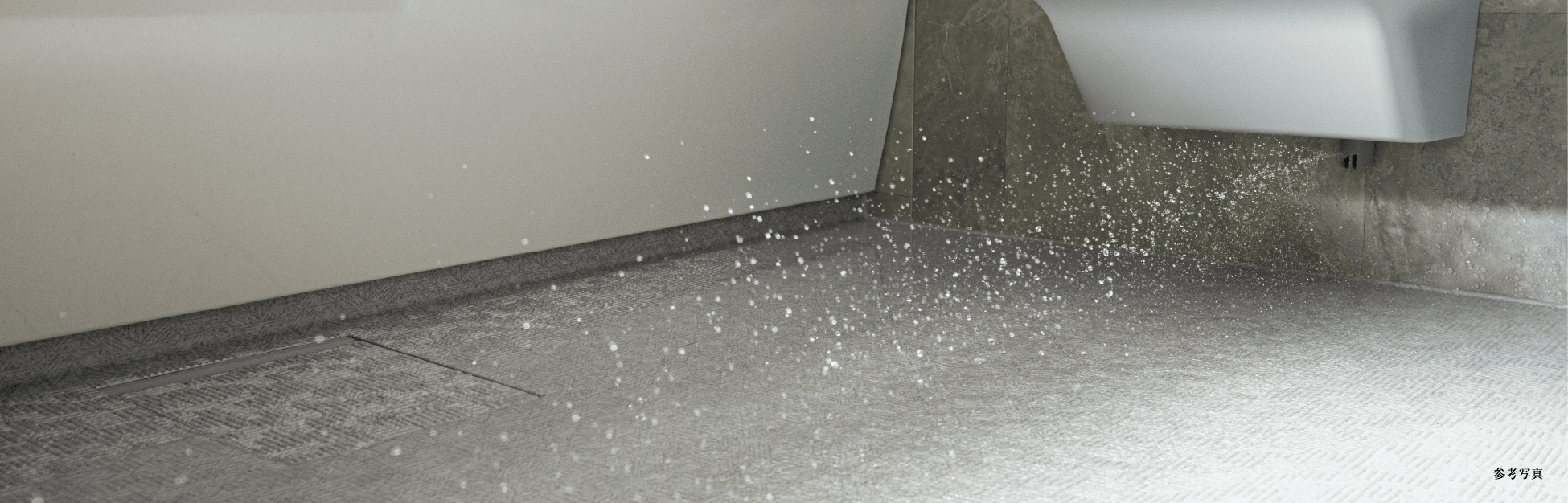 床表面に特殊処理をした親水層の効果で、皮脂汚れと床の間に水が入り込み汚れ落ちがスムーズに。ブラシでのお掃除がラクラクです。