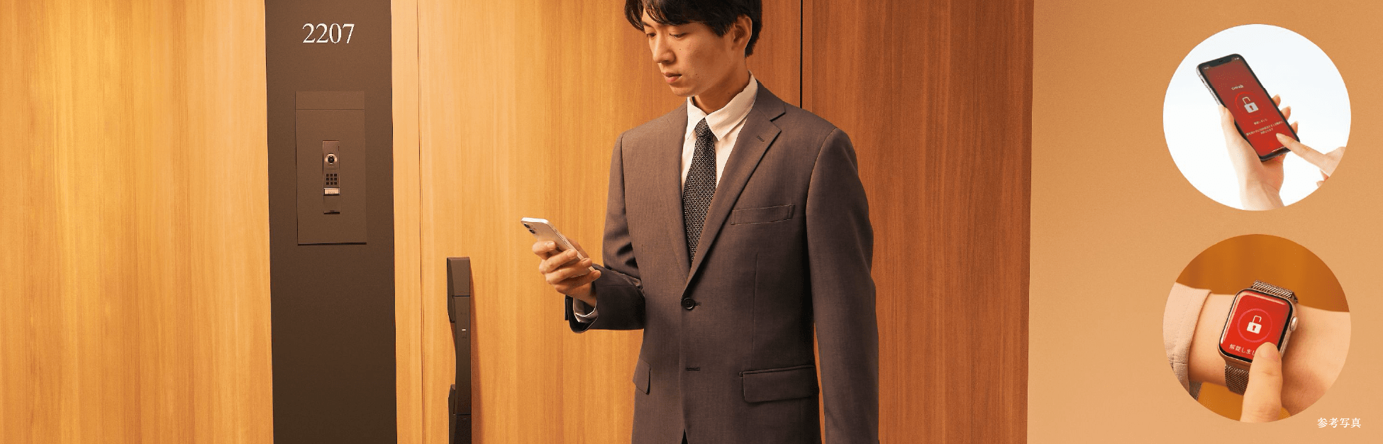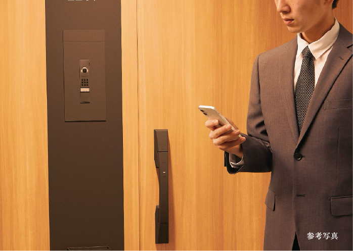 エントランスから玄関※まで、ハンズフリー・非接触キーに加え、スマートフォンやスマートウォッチのアプリ操作で通過できます。