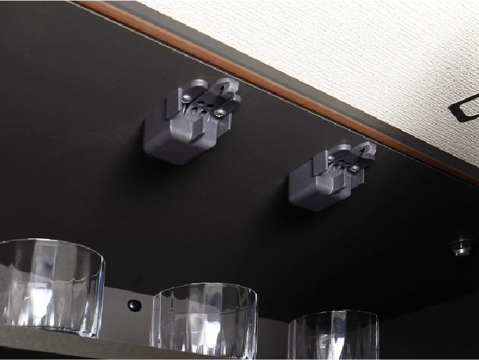 吊戸棚には、地震時に収納物が飛び出すのを防ぐ耐震ラッチを装備しています。