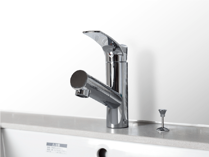 水温・水量の調節をレバーでスムーズに操作できる機能的な水栓を採用しています。