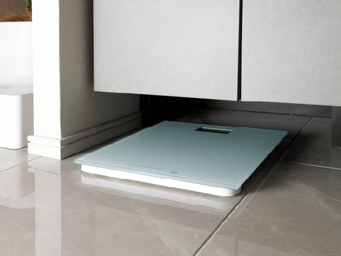 洗面化粧台下部にヘルスメーターの収納スペースを確保。スムーズに取り出すことができます。