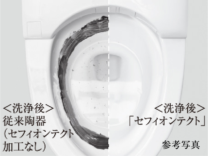 ※10年使用後相当の便器にて比較。便器内にTOTOで合成した疑似汚れを塗布。