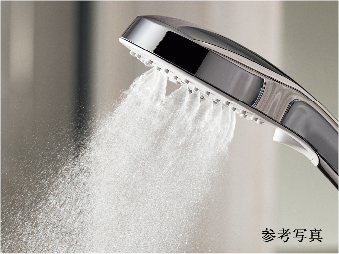 ウエーブ&スプレー2つの水流で節水しながら心地よい刺激ある浴び心地を両立。ナチュラルケアミストはウルトラファインバブルを含むミストで汚れをやさしく洗い流します。