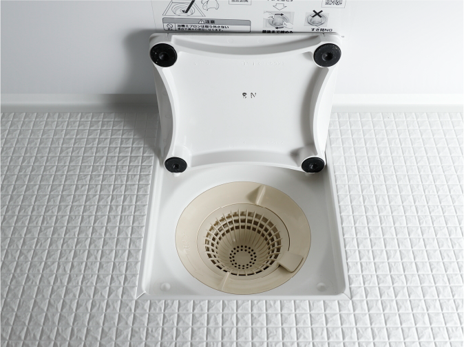 凹凸が少なく、汚れが落としやすい形状なのでお掃除がラクラク。さらにトラップカバーを開けて見える部分がすべて抗菌・防カビ効果を持つ樹脂で、ぬめりやカビ汚れの増殖を抑えます。