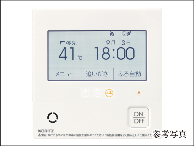 給湯器で使用したガス・お湯の目安使用量とCO₂目安排出量を見える化したガス給湯器リモコンです。